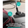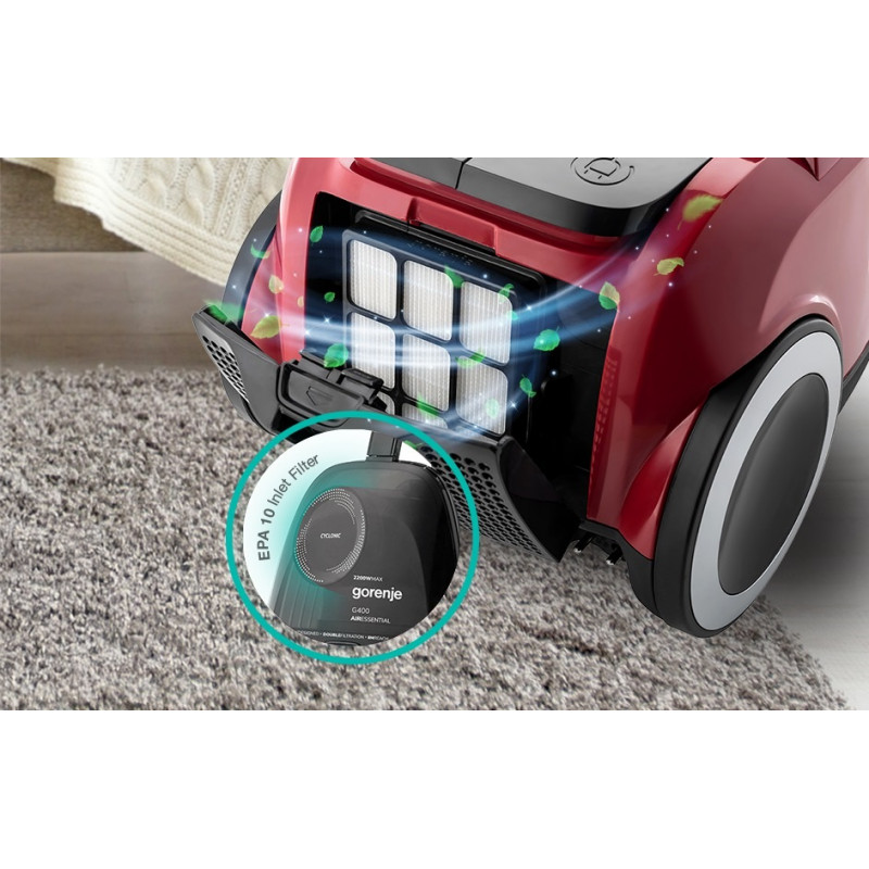 Потужність всмоктування становить 330 Вт, а повітряний потік — 33,3 л/сек. Телескопічна металевa трубка діаметром 35 мм та довжиною 86 см дозволяє комфортно прибирати важкодоступні місця. Приєднувальний кабель довжиною 6 м та можливість досягати далі до 8 м забезпечують широкий радіус дії.