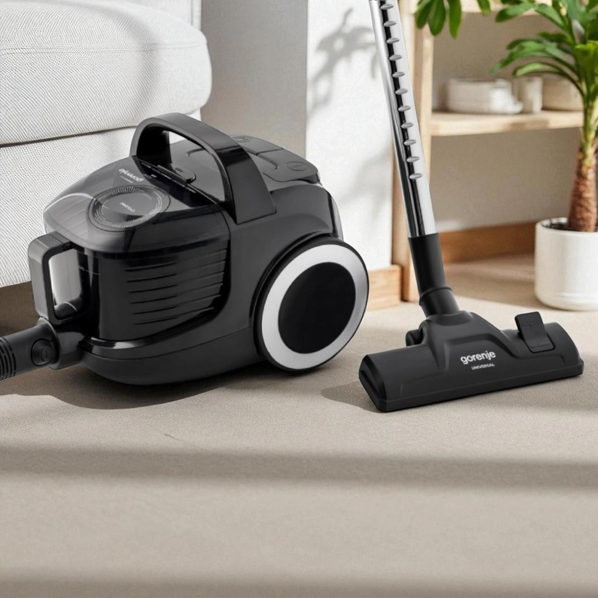 Опис Пилосос Gorenje контейнерний, 800Вт, конт пил -2.2л, HEPA, телескоп трубка, чорний