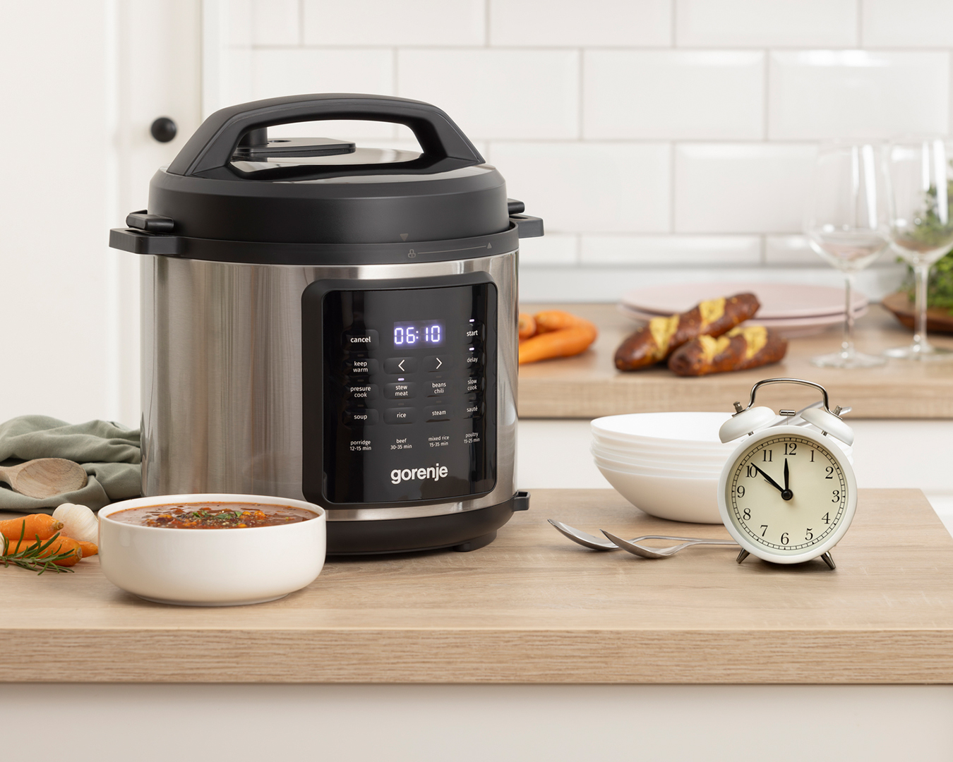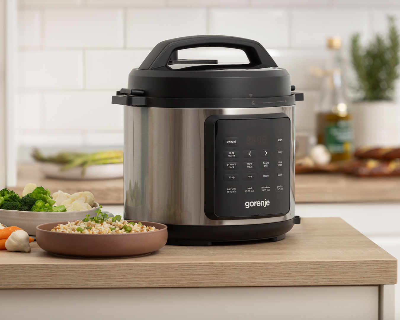 Мультиварка-скороварка Gorenje – це сучасний багатофункціональний прилад, який дозволяє швидко й легко готувати різноманітні страви. Потужність 1000 Вт у поєднанні з функцією приготування під тиском забезпечує значну економію часу без втрати смаку.