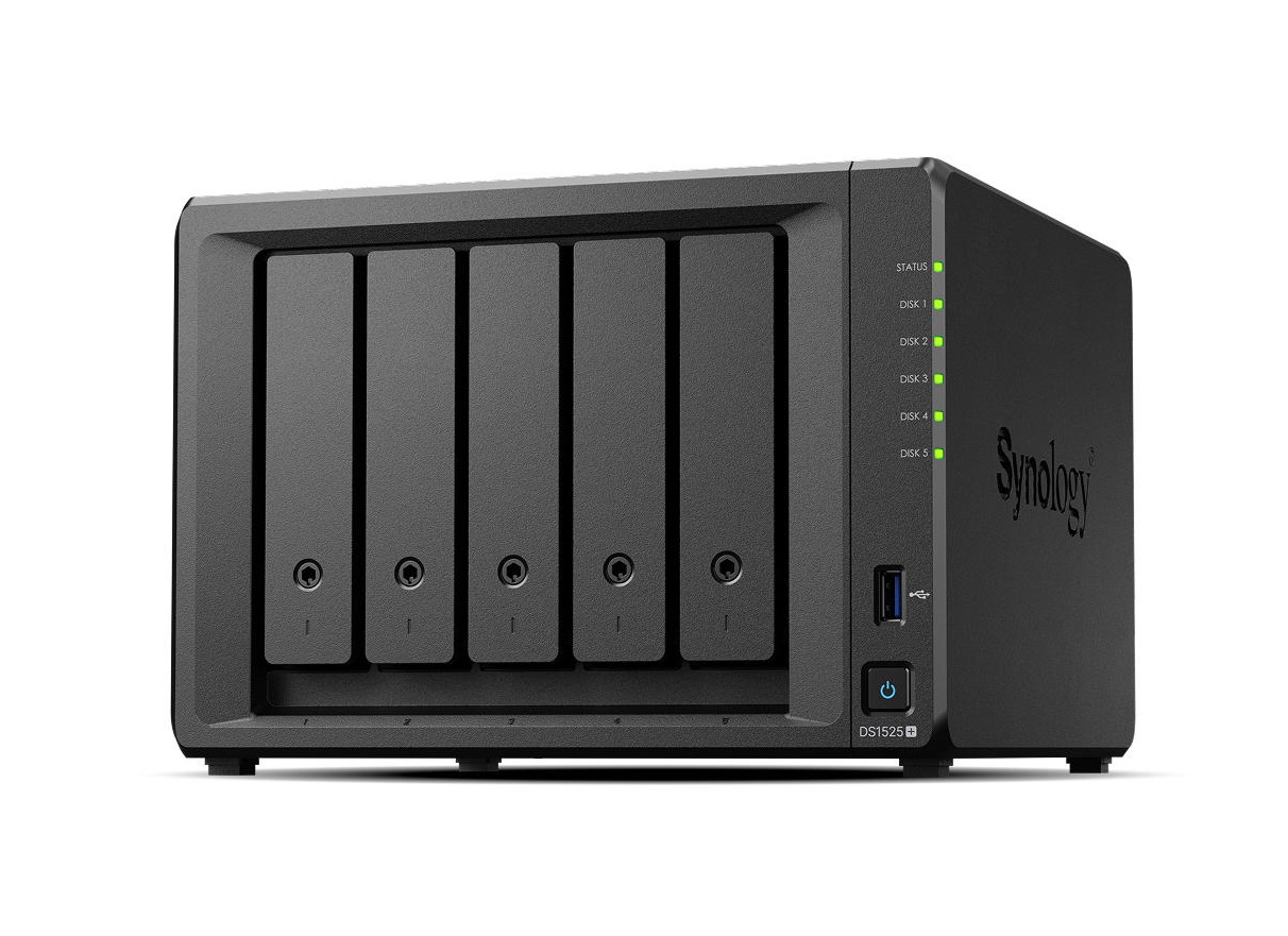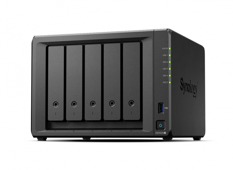 Рішення DS1525+ оснащене вбудованим мережевим портом 2.5GbE і має можливість підключення 10GbE4, підтримує SSD- і HDD-диски SATA при установці у внутрішні відсіки 2,5"/3,5", а також диски M.2 NVMe через слоти M.2 для використання в якості кешу