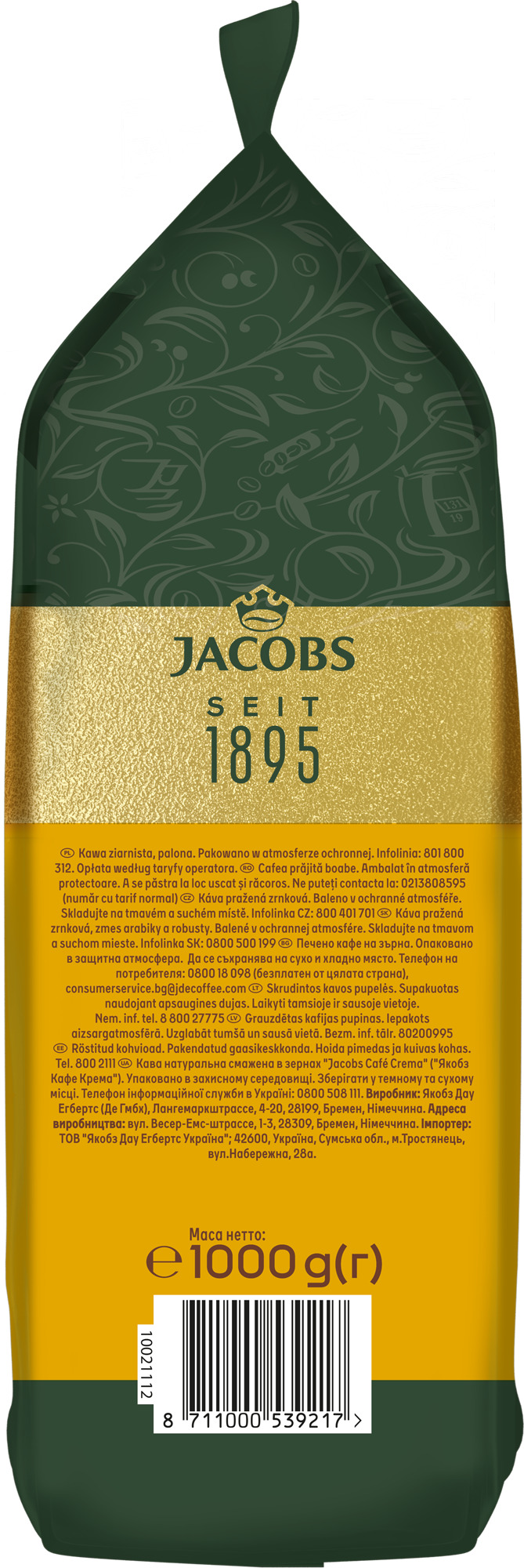 Кава Jacobs зерна, 1000г, Crema Gold, купаж арабіка/робуста