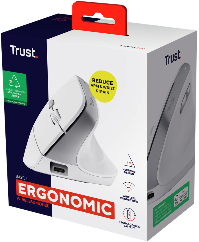 Мышь Trust Bayo II Ergonomic, WL, белый