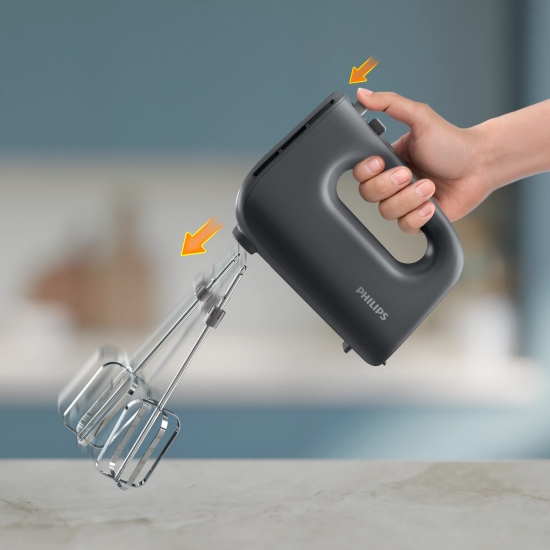 З міксером Philips можна готувати смачні та пухкі десерти й хліб для всієї родини. Легкі конічні вінчики скорочують час збивання та забезпечують однорідне тісто. Потужний двигун 400 Вт дозволяє без зусиль впоратися навіть із найщільнішим тістом.