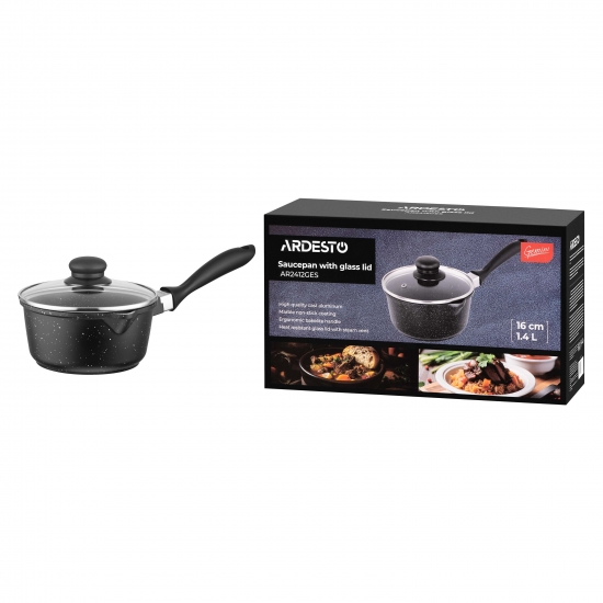 ARDESTO Ківш зі скляною кришкою ARDESTO Gemini Anzio, 1.4л, алюміній, чорний