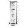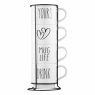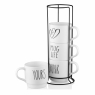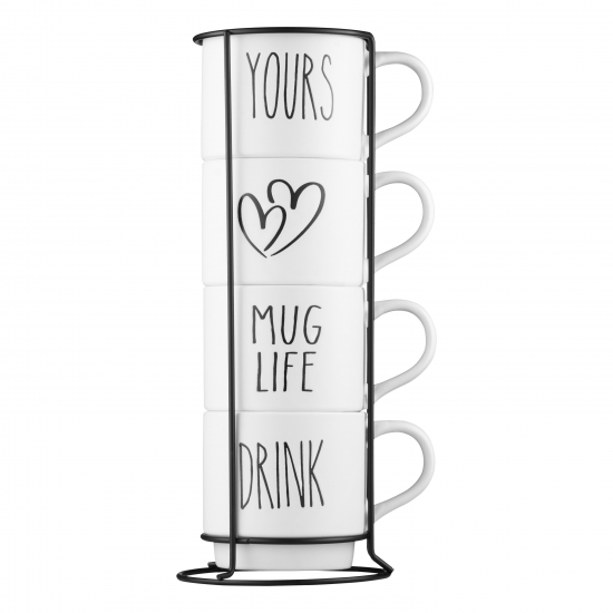 Набір чашок на підставці ARDESTO – це ліпший вибір для всіх, хто цінує красу та практичність. У наборі 4 оригінальні та зручні чашки білого кольору, які доповнено написом. Посуд виготовлено з кераміки – екологічного, міцного та довговічного матеріалу, який забезпечить тривалий термін слугування. Чашки об’ємом 320 мл, діаметром 9,2 см і висотою 8,5 см стануть в пригоді для подавання як чаю, так і кави. Вироби можна використовувати в мікрохвильовій печі та мити в посудомийній машині. Підставка виготовлена з металу, – це зручне та стильне рішення для організації простору, з нею улюблені чашки завжди будуть напохваті. Набір буде вдалим подарунком для близьких і друзів.