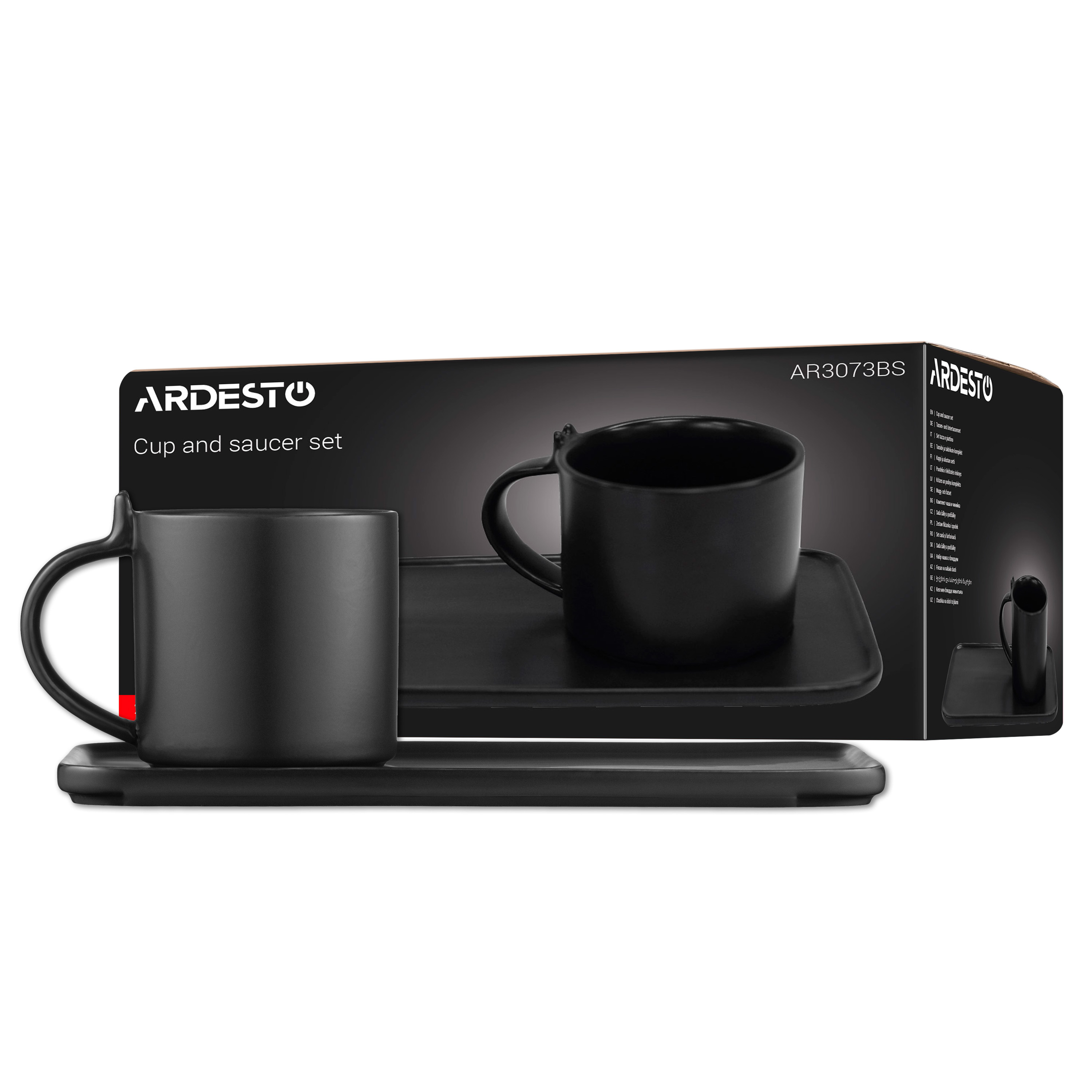 Набір чашка з блюдцем Ardesto, 250мл, порцеляна, чорний (AR3073BS)