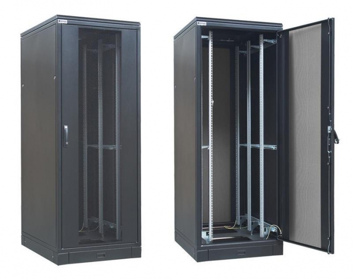 Опис Шафа ZPAS 19", 42U, SZB IT, передні одностулкові перфоровані двері і задні розпашні, 600x1200 мм, максимально 1500кг, чорна