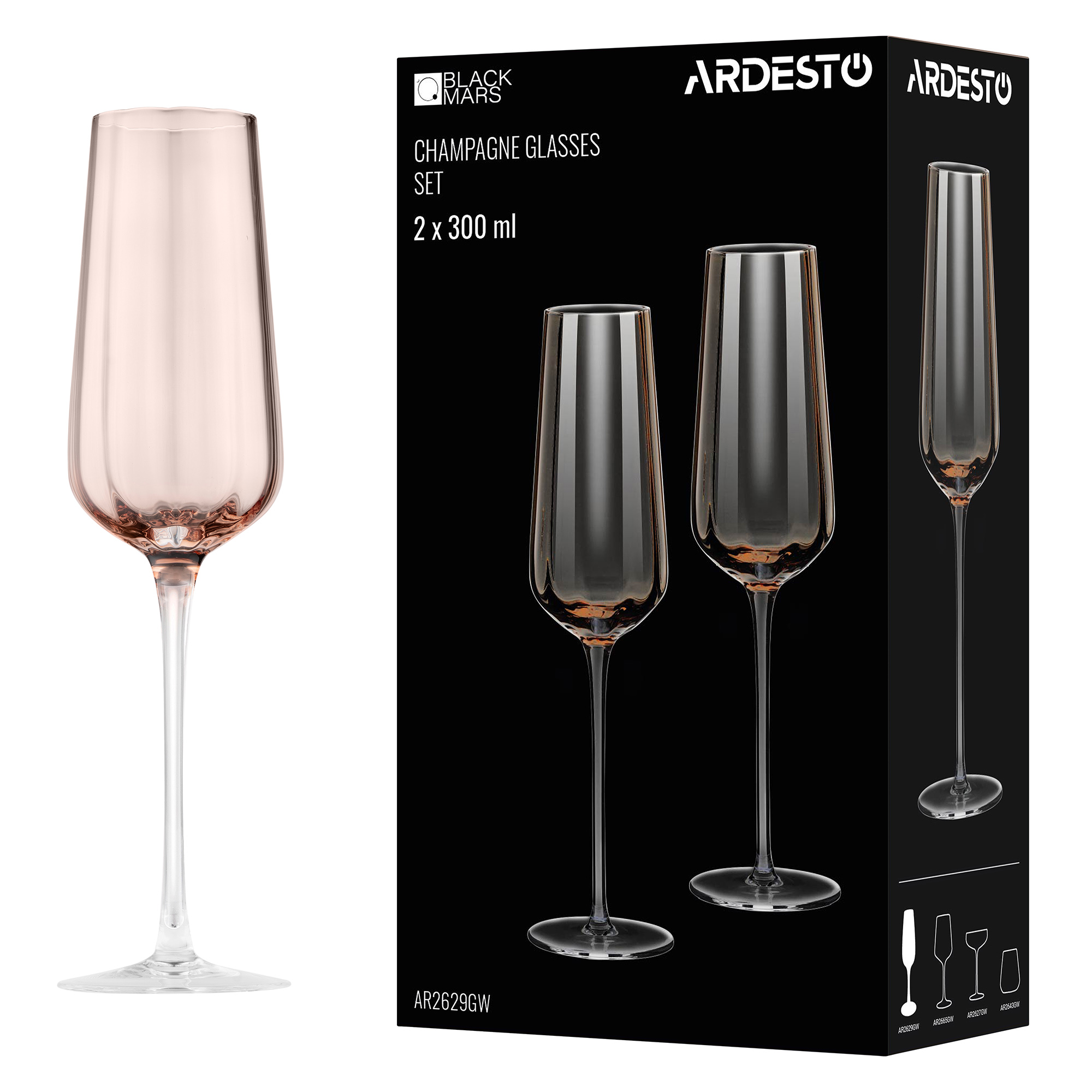 Набір келихів для шампанського Ardesto Black Mars Altair AR2629GW (300мл) 2шт