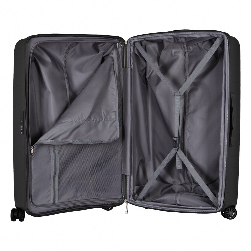 Жорсткий корпус виготовлено зі 100% поліпропілену, що забезпечує надзвичайну міцність за мінімальної ваги. Усередині валіз передбачено розділювачі та регульовані пакувальні паски для надійної фіксації речей, це організовує і впорядковує поклажу, і в такий спосіб забезпечується високий рівень комфорту та безпеки, що зробить подорож безтурботною.
