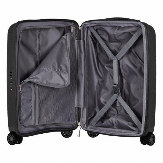Жорсткий корпус виготовлено зі 100% поліпропілену, що забезпечує надзвичайну міцність за мінімальної ваги. Усередині валіз передбачено розділювачі та регульовані пакувальні паски для надійної фіксації речей, це організовує і впорядковує поклажу, і в такий спосіб забезпечується високий рівень комфорту та безпеки, що зробить подорож безтурботною.