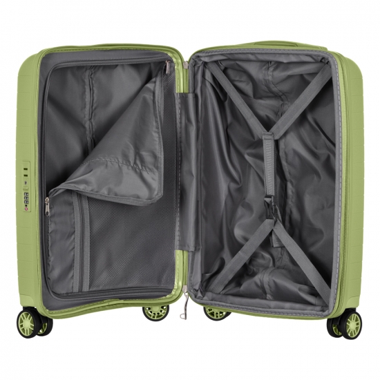 2E Чемодан, Aero, полипропилен, малый, 35/44 л, TSA, 4 колеса, EXP, оливково-зеленый