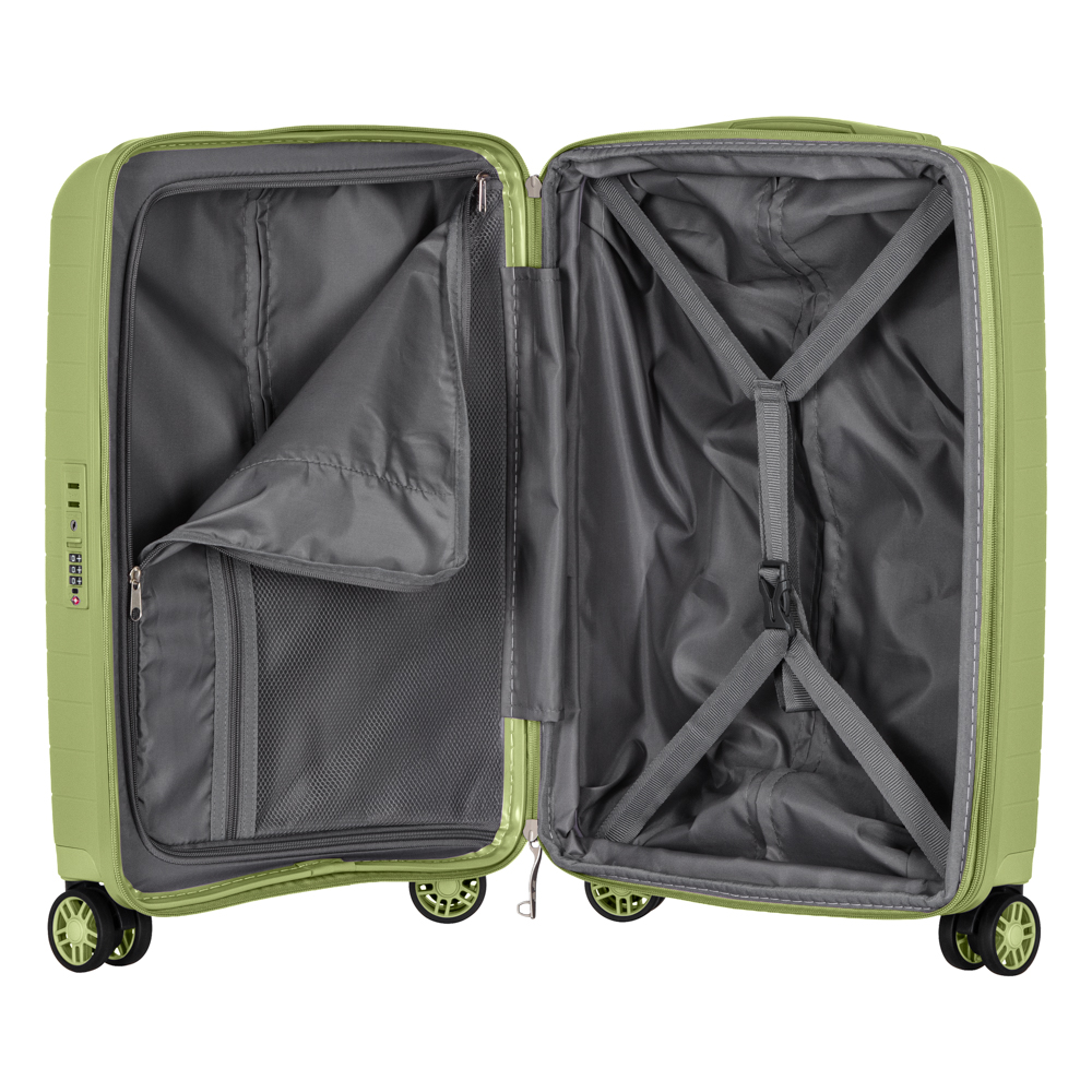 Компактна дорожня валіза 2E поєднує легкість, міцність і продуманий дизайн для зручних подорожей. Жорсткий полегшений каркас вкрито зносостійкою поліестеровою тканиною з фактурним плетінням, що забезпечує привабливий вигляд і стійкість до пошкодження. Усередині є еластичні пакувальні ремені для надійної фіксації речей і додаткова кишеня на блискавці для дрібних предметів. Валіза має фіксований об’єм 35 л, тому згодиться для нетривалих поїздок або використання як ручної поклажі.