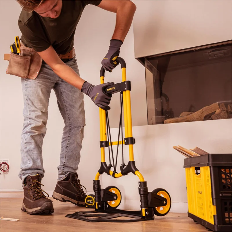 Stanley SXWT-FT580 — практичний складаний візок для транспортування вантажів у побуті, офісі чи на складі. Міцна платформа 39х28 см витримує вагу до 70 кг, а завдяки складаній конструкції він легко розкладається та займає мінімум місця під час зберігання. Ергономічна ручка та надійні колеса забезпечують зручне пересування навіть на нерівних поверхнях. Легка вага (3,9 кг) робить його простим у використанні й мобільним рішенням для щоденних завдань.