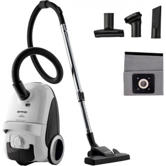 Опис Пилосос Gorenje мішковий, 800Вт, 3л, вага-6.5кг, HEPA, індикатор, телескоп, білий
