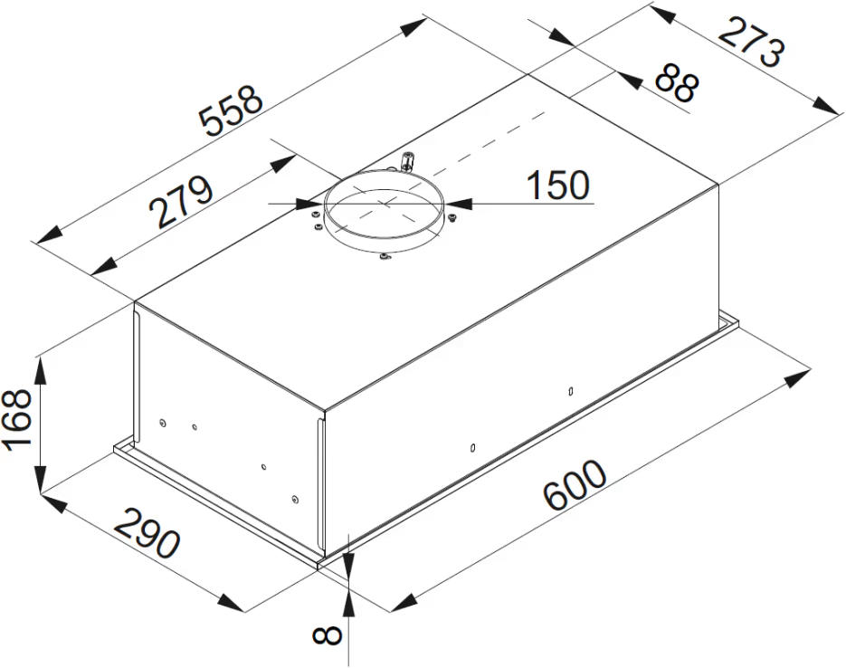 | Діаметр вихідного отвору | 150 мм |