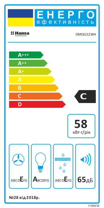 | Клас енергоспоживання | C |