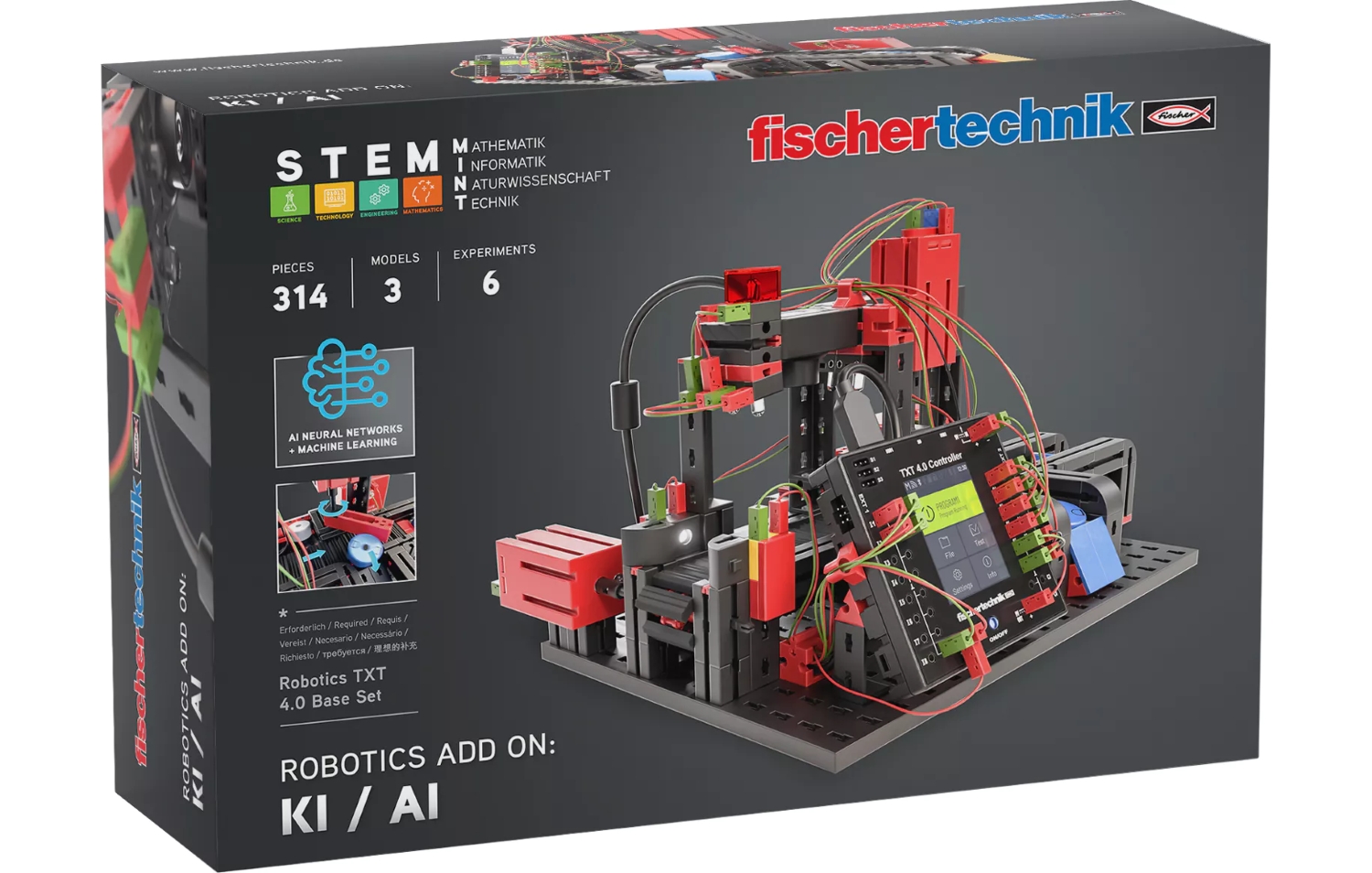 Набір містить три моделі з різними рівнями складності. Вони ілюструють різноманітність застосувань штучного інтелекту та пропонують ідеальний вступ до цієї перспективної технології. У комплект поставки входять навчальні супровідні матеріали, спеціально призначені для використання в класі, які поглиблюють розуміння штучного інтелекту.