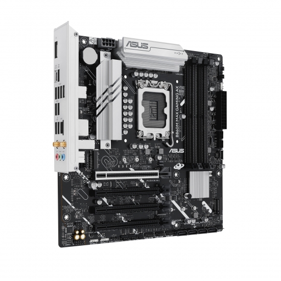 Материнські плати серії ASUS B860 розроблені фахівцями для розкриття повного потенціалу новітніх процесорів Intel Core Ultra (серія 2). Материнська плата B860M MAX GAMING AX, що відрізняється надійною схемою живлення, комплексними рішеннями для охолодження та інтелектуальними опціями налаштування, надає користувачам і збирачам ПК широкий спектр можливостей для оптимізації продуктивності за допомогою інтуїтивно зрозумілого програмного забезпечення та функцій прошивки.