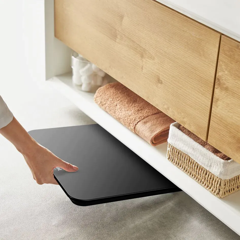 Тонкий дизайн зі стильною скляною платформою оптимальний для зберігання, коли ваги не використовуються.