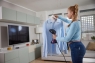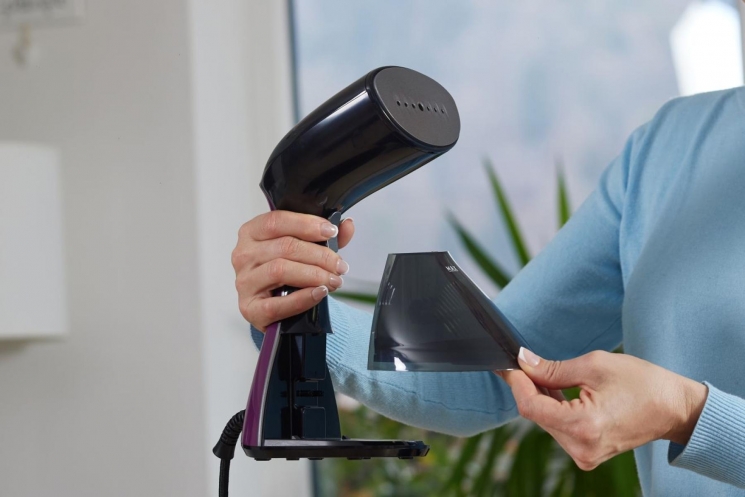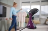 Пристрій розроблений для вертикальної подачі пари: просто повісьте речі на вішалку та миттєво освіжіть їх — дошка для прасування більше не потрібна.