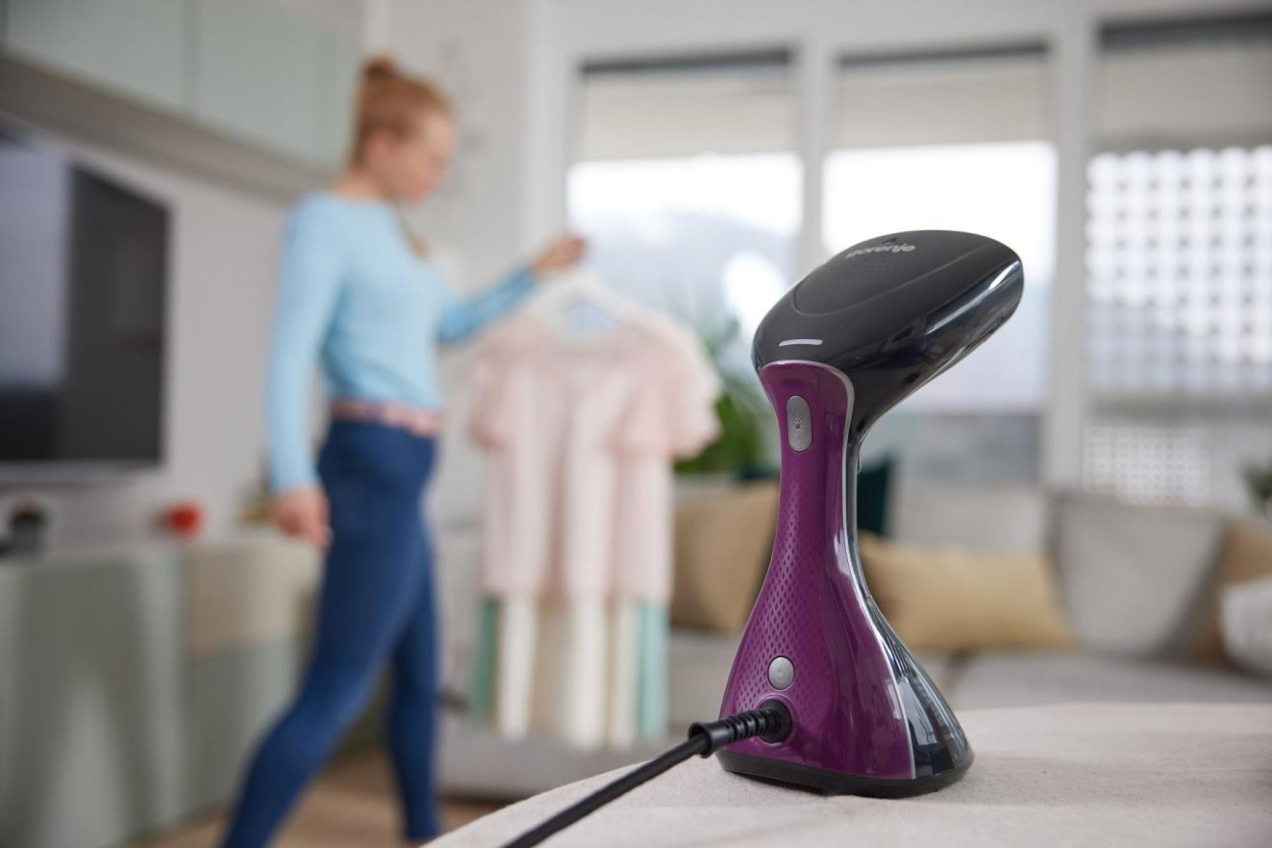 Gorenje GS2100BKV забезпечує інтенсивну подачу пари, яка глибоко проникає в тканину для швидкого та ефективного розгладжування. Насолоджуйтеся свіжим і охайним одягом за кілька секунд — без прасувальної дошки!