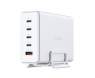 Компактний зарядний пристрій з технологією GaN забезпечує потужність до 240 W для одночасного заряджання до 5 пристроїв. Оснащений чотирма портами USB-C і одним USB-A, має інтелектуальну систему розподілу потужності та підтримує стандарти PD 3.1 і QC 4.0. До комплекту входить зручна підставка. Є захист від перегріву, перенапруги, короткого замикання та перезаряду.