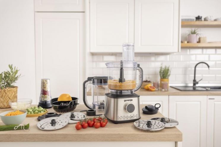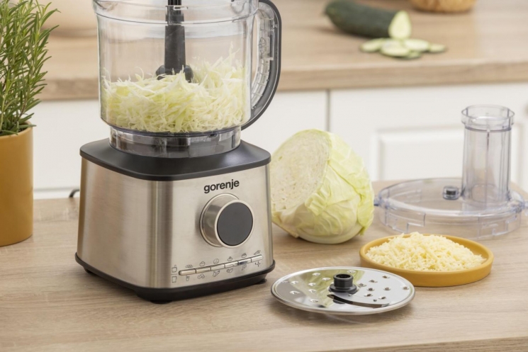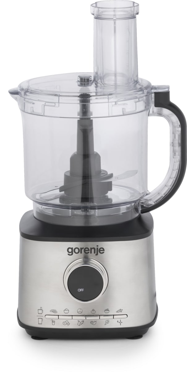 - Повний комплект насадок: універсальний ніж, тістоміс, збивання білків, 4 диски, цитрус-соковидавлювач — готовність до будь-яких рецептів.