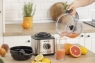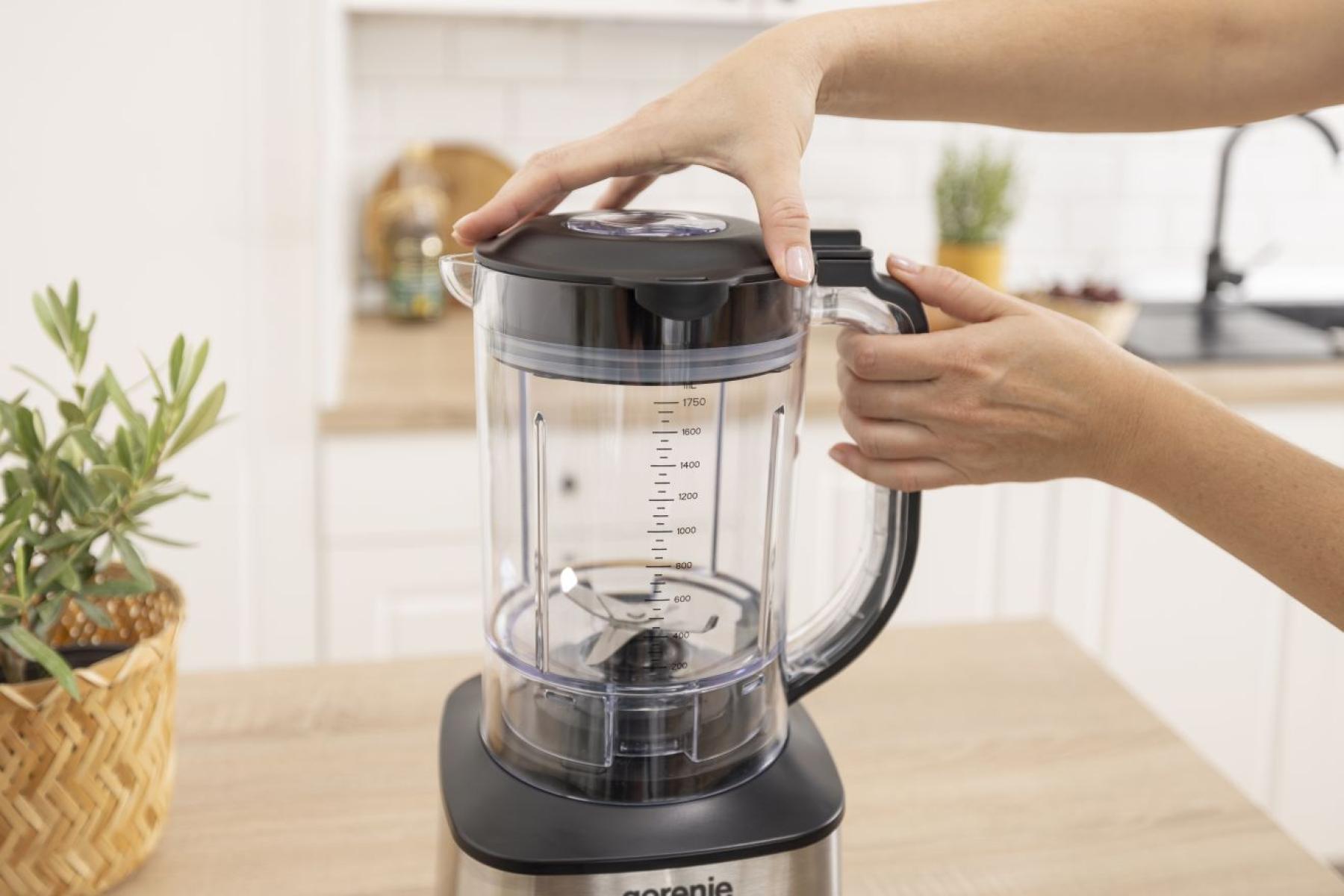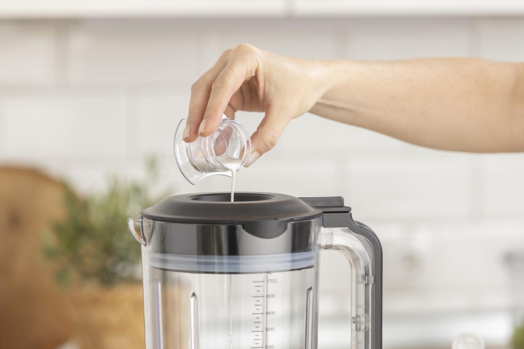 Для точного дозування передбачено мірні позначки на чаші й глечику та подвійний мірний отвір у кришці (для сипких і рідких інгредієнтів). Знімні частини придатні для миття у посудомийній машині, що спрощує догляд.
