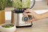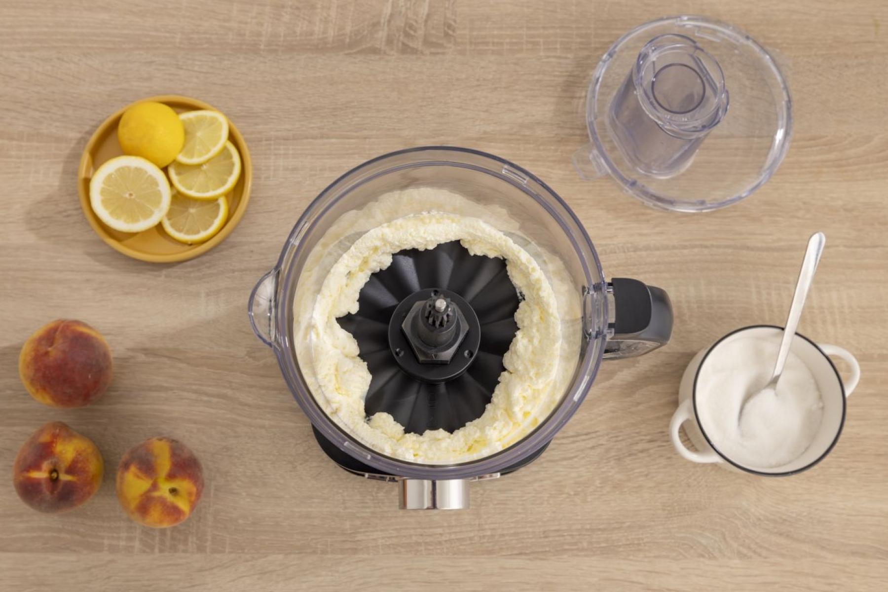 Кухонний комбайн із технологією Fusion Mode інтуїтивно поєднує функції комбайна та блендера: прилад автоматично розпізнає встановлену насадку та підлаштовує доступні програми, тож керування залишається простим і логічним. На панелі — 6 кнопок, які відкривають 12 автопрограм: для комбайна — подрібнення, білки, тісто, сік, нарізання/шаткування, фрі/пюре; для блендера — смузі, лід, овочі та фрукти, пюре, морозиво, очищення.