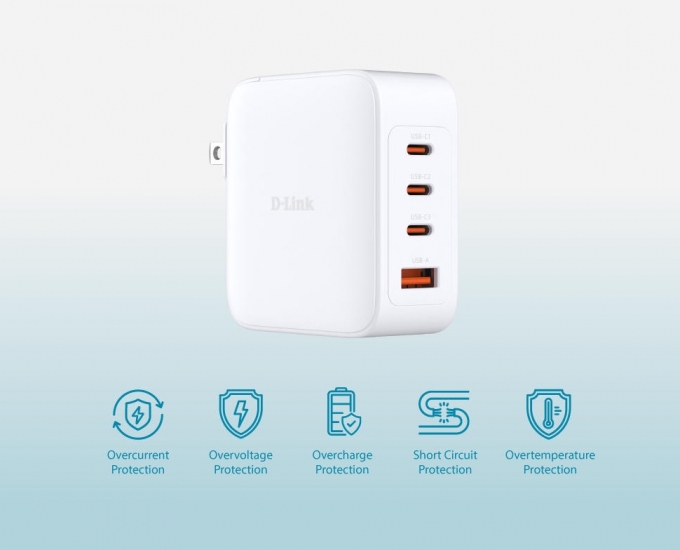 Оптимізуйте робочий простір у вашому домі за допомогою D-Link DCF-141. Цей потужний зарядний пристрій GaN потужністю 140 Вт одночасно заряджає ноутбук, планшет, мобільний телефон та інші пристрої на повній швидкості. Компактний та ефективний, він допомагає вам залишатися зосередженим і повністю зарядженим протягом усього дня.