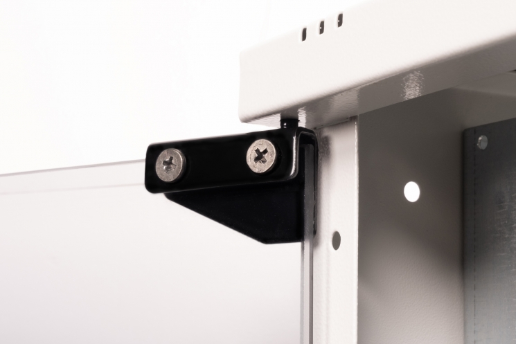 DIGITUS SOHO PRO DN-49200 — настінна 19" шафа 4U для домашніх і офісних мереж. Сталевий корпус із порошковим покриттям, скляні двері з замком, дві пари регульованих 19" рейок, кабельні вводи зверху/знизу, вентиляція, клас захисту IP20, вантажопідйомність до 60 кг. Постачається в розібраному стані.