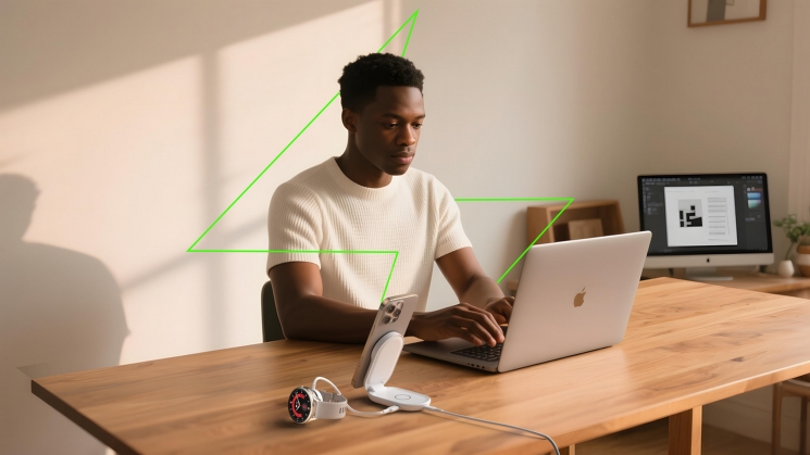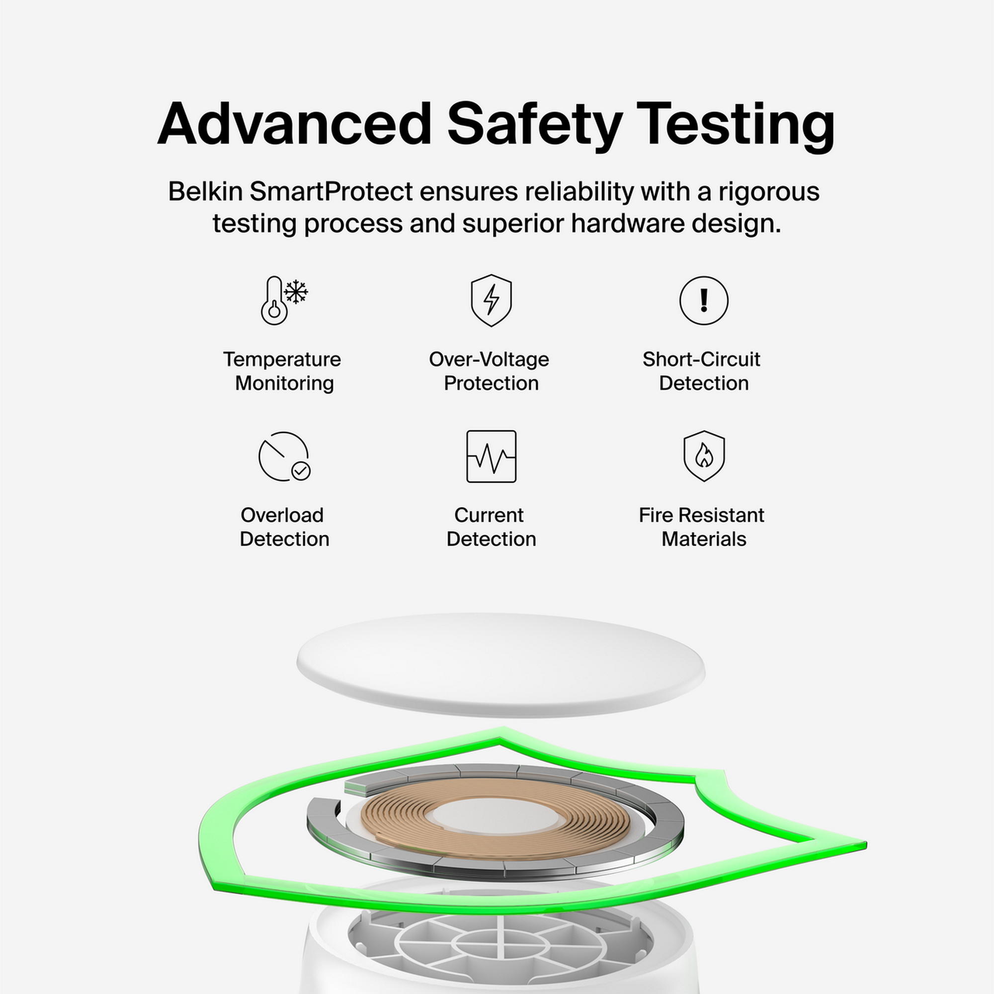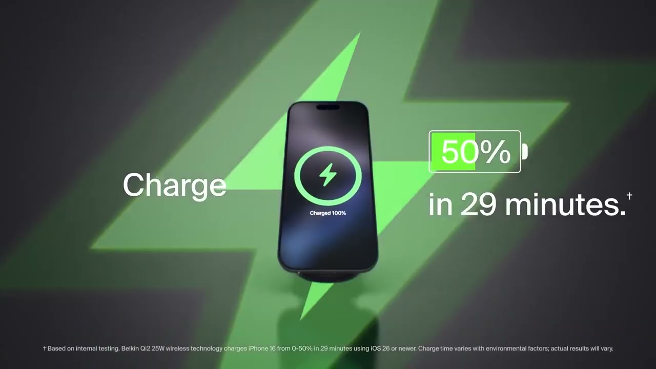 Заряджайте два пристрої одночасно швидко та безпечно завдяки сертифікованій технології Qi2 25 Вт. Усього за 29 хв iPhone заряджається від 0 до 50 %, а AirPods отримують бездротове живлення до 5 Вт. Додатково вбудований USB-C порт 5 Вт дає змогу зарядити смартгодинник. Технологія ChillBoost із пасивним охолодженням знижує нагрівання під час швидкого заряджання, зберігаючи оптимальний стан батареї. А завдяки складаному, легкому та портативному дизайну зарядну станцію зручно брати з собою – вона перетворює будь-яку поверхню на зарядний хаб.