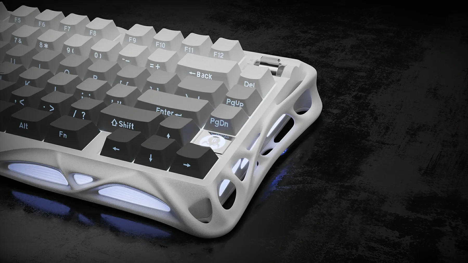 Будьте готові до всього з наступною еволюцією дизайнерської серії K1. Нематеріальні каталізатори переробили живий метал, об'єднавши і сконденсувавши його в обтічну форму, яка все ще світиться власним внутрішнім сяйвом. Рекурсивні металеві гілки обтікають ряди спеціальних лінійних перемикачів Kailh, готових до входу та ідеально збалансованих для будь-якого виклику, що чекає на них попереду.