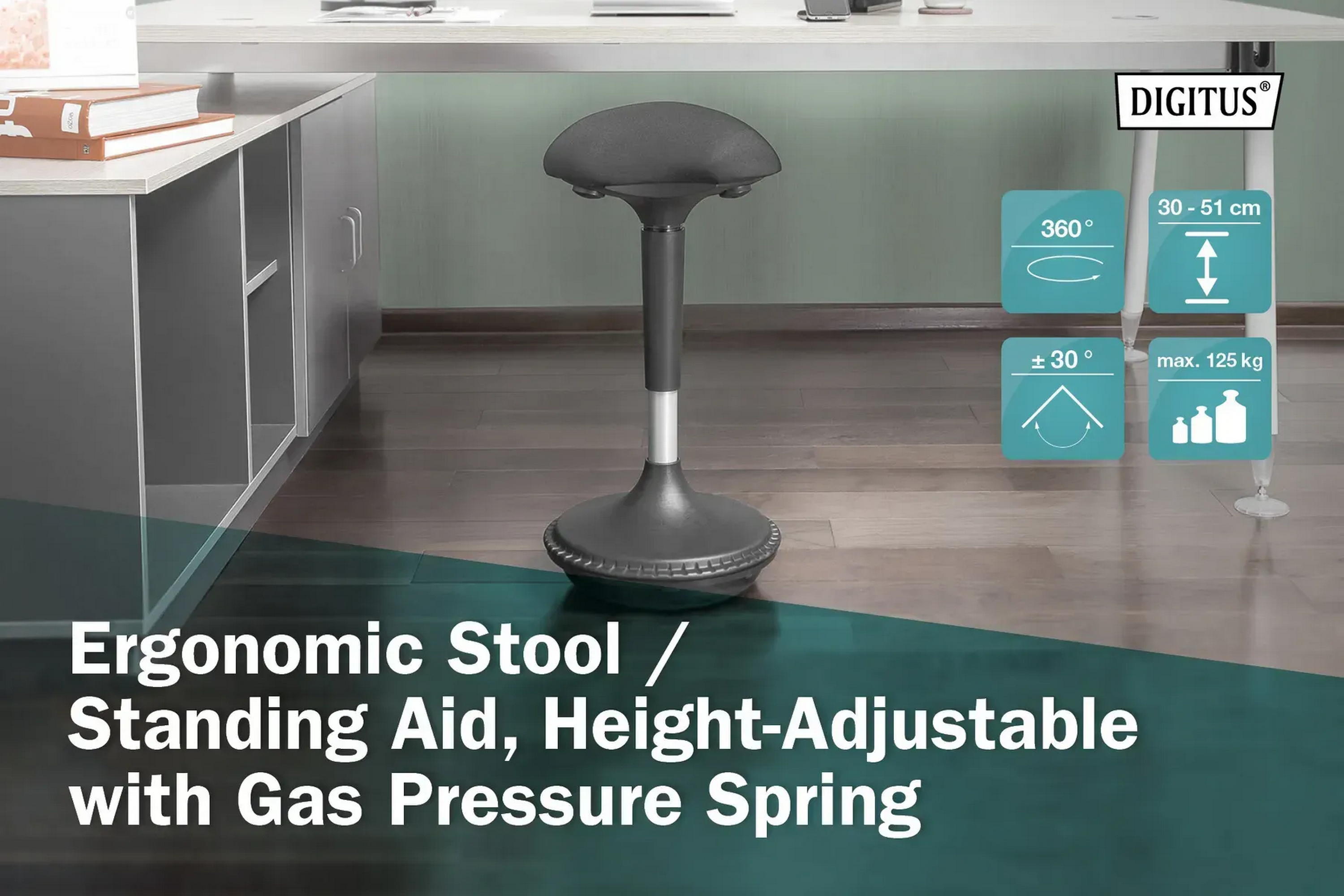 Стілець DIGITUS Ergonomic Standing Chair дозволяє комфортно поєднувати сидіння та стояння. Висоту легко регулювати від 63 до 88 см за допомогою кнопки та газової пружини. Крісло обертається на 360° і дозволяє рухатися навіть сидячи. Можна похитуватися вперед-назад або виконувати легкі вправи для розвантаження ніг. Ідеальне рішення для активної роботи в офісі чи вдома.