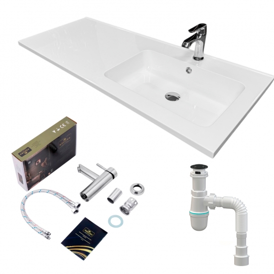 Опис Набір для ванної кімнати, раковина, умивальник Adamant FLATE 120R, штучний камінь, прямокут., з сифоном Click-Clack + змішувач