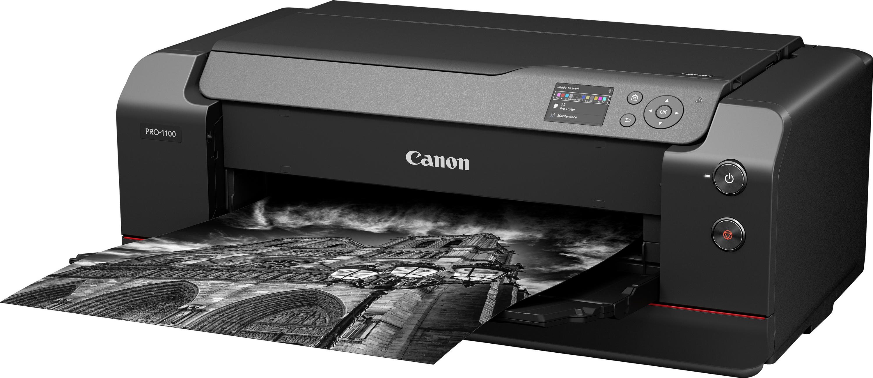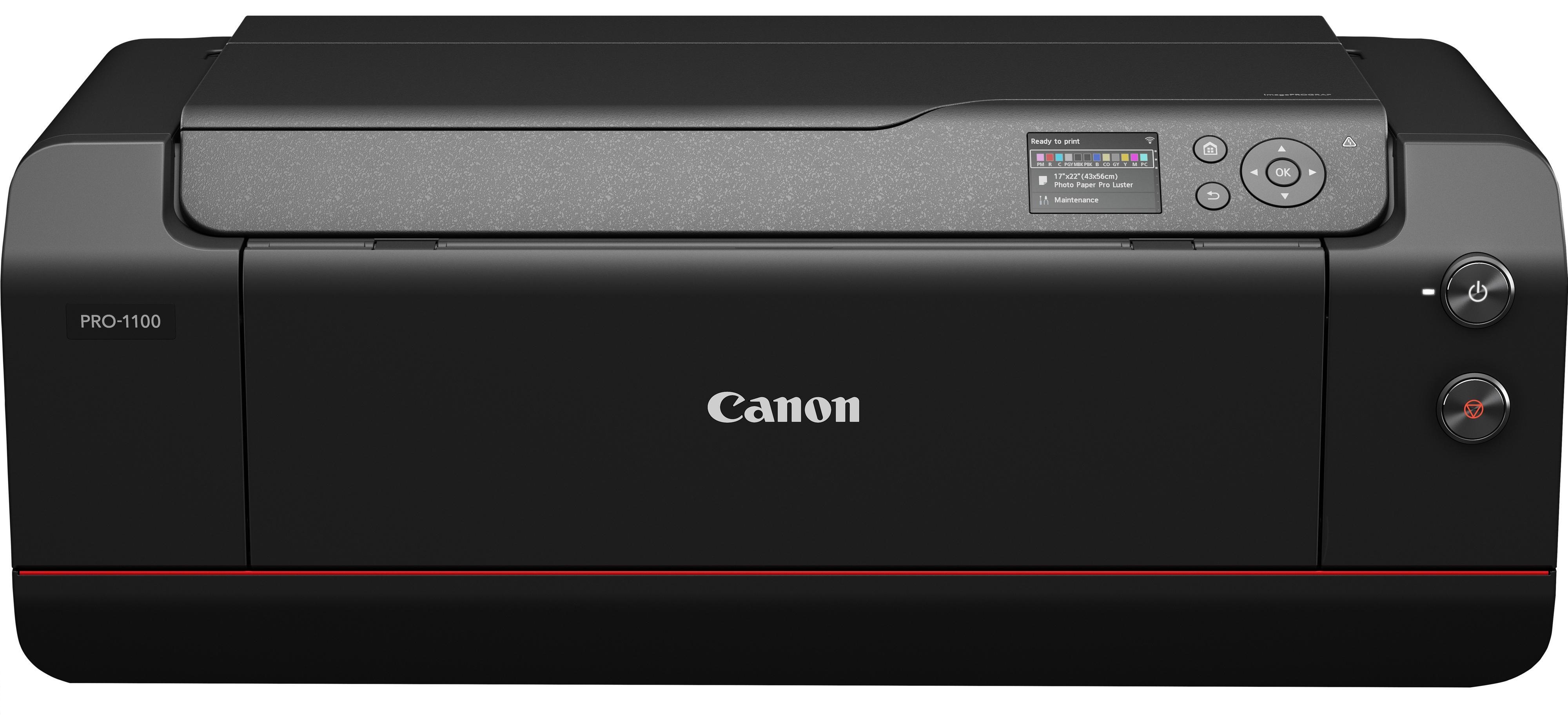 Canon imagePROGRAF PRO-1100 — це принтер формату A2, створений для професійного друку з високою точністю відтворення кольорів. Завдяки системі з 12 пігментних чорнил LUCIA PRO II і технології ChromaLife100+ він забезпечує довговічність відбитків до 200 років. Пристрій підтримує друк на широкому спектрі матеріалів і пропонує зручне керування через 3" TFT-дисплей.