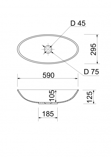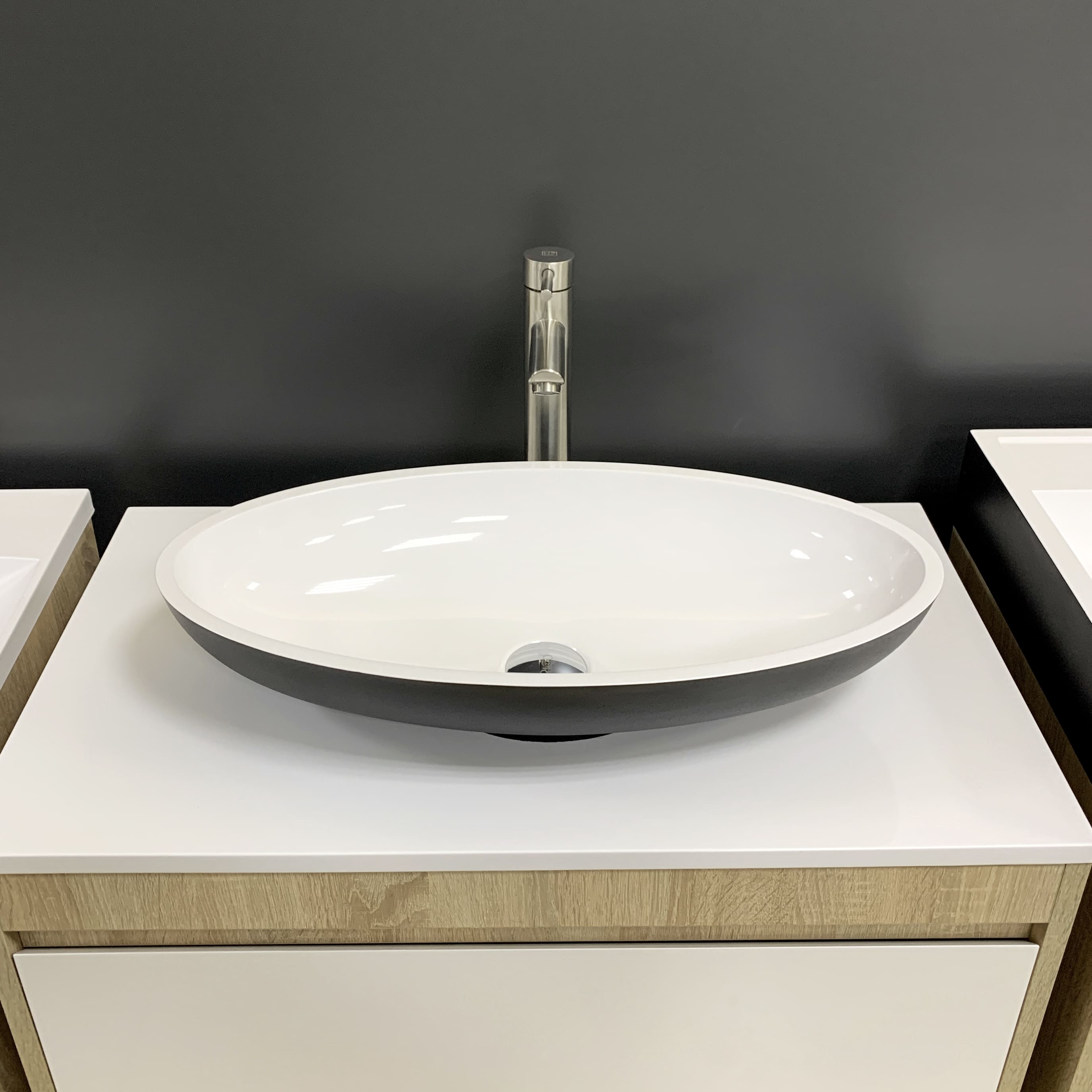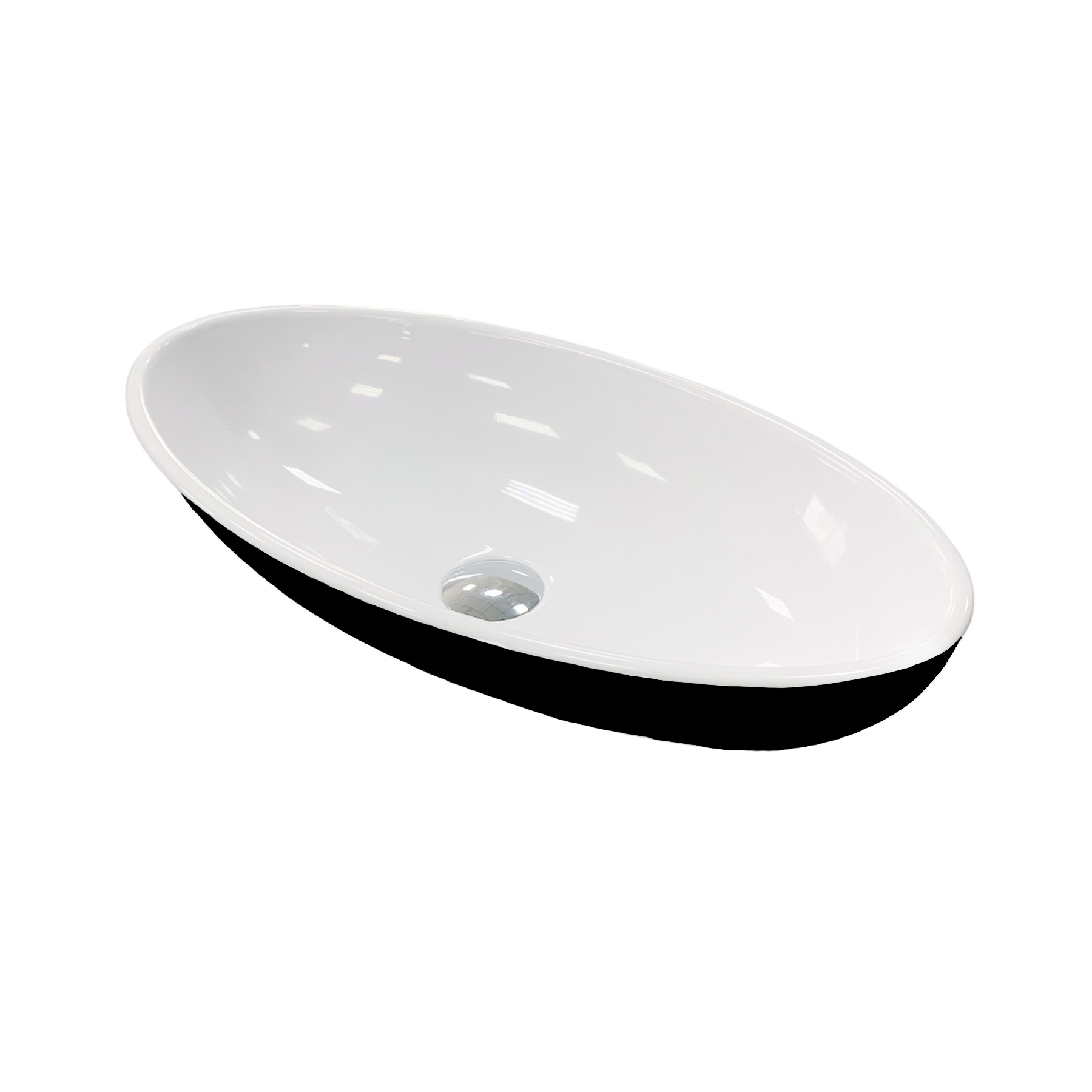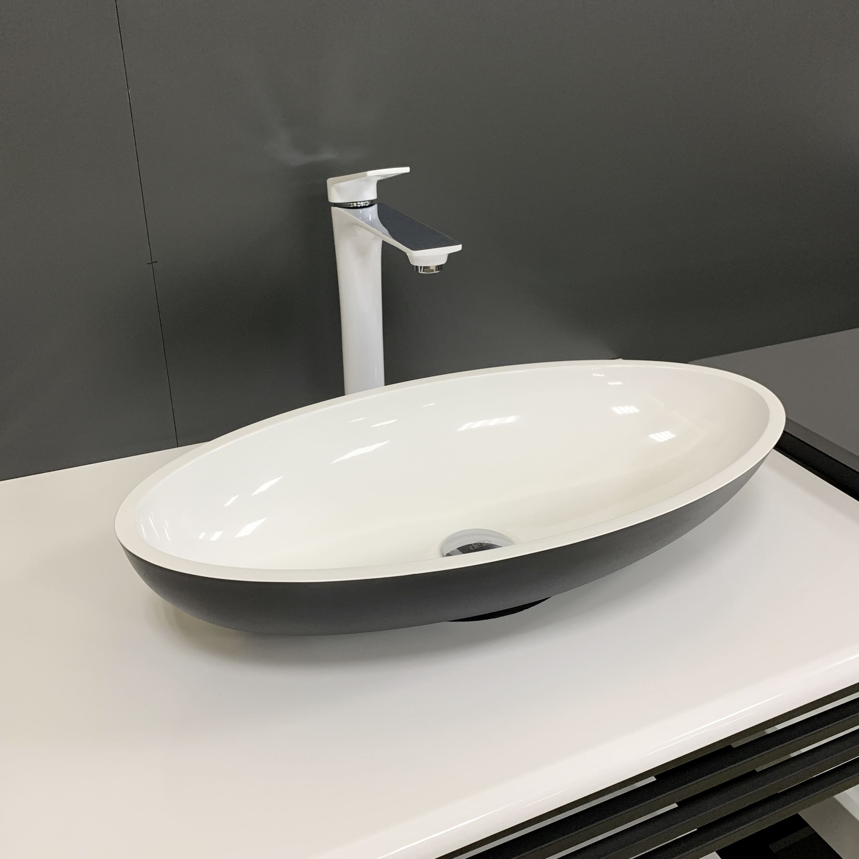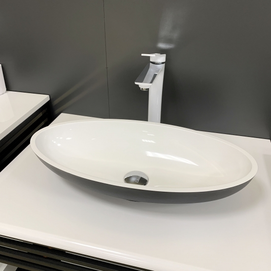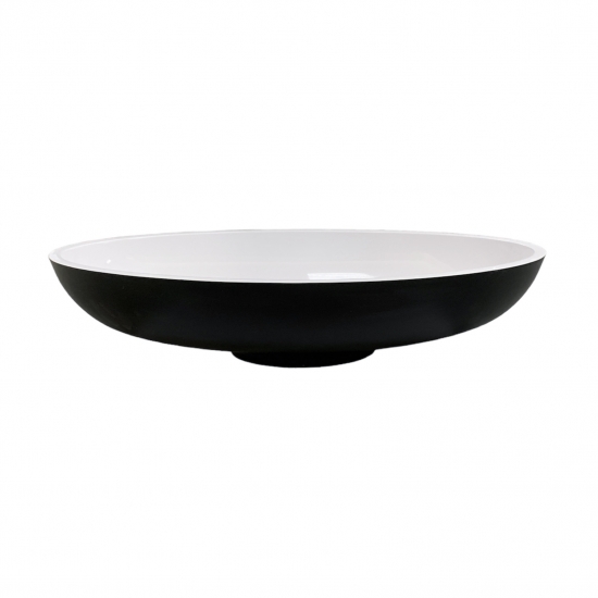 Раковина Adamant LOWER має прямокутну форму, виготовлена зі штучного каменю з розмірами 560 x 360 x 100 мм та чорно-білим кольором. Накладний тип встановлення з отвором для змішувача та без отвору для переливу дозволяє монтаж зверху на стільницю. Матеріал створений за технологією Solid Surface, стійкий до впливу та довговічний.