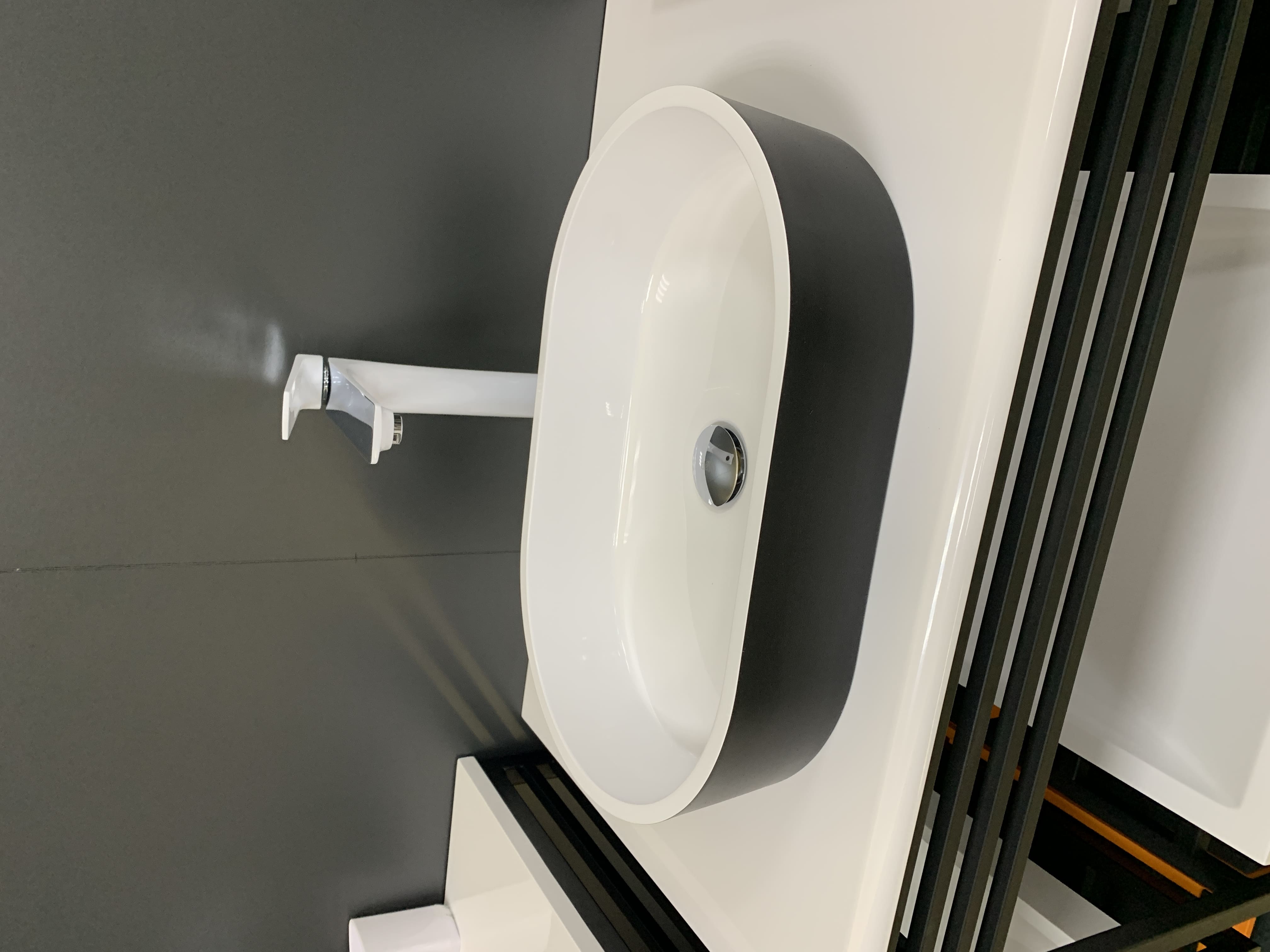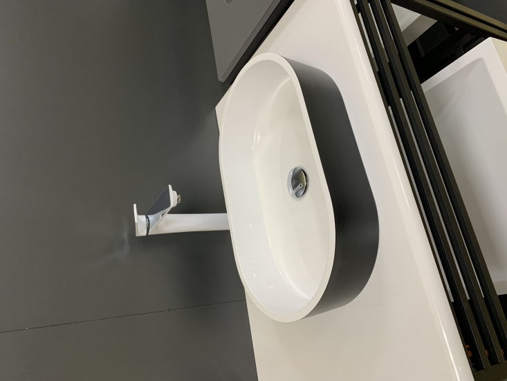 Головна - Побутова техніка, інструменти та товари для дому - Сантехніка - Раковини - Adamant - Раковина, умивальник BESTE NEW, штучний камінь, овальна, без отвору для змішувача та переливу, 540x350x11мм, врізний, чорно-білий