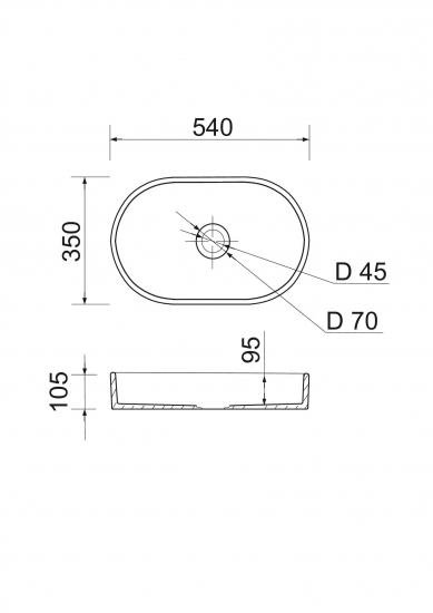Раковина Adamant BESTE NEW має овальну форму, виготовлена зі штучного каменю з розмірами 540 x 350 x 110 мм та чорно-білим кольором. Накладний тип встановлення без отвору для змішувача та переливу дозволяє монтаж зверху на стільницю. Матеріал створений за технологією Solid Surface, стійкий до впливу та довговічний. Виріб вироблено в Україні.