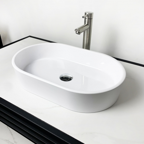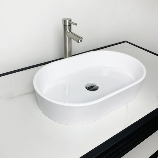 Раковина, умивальник Adamant BESTE NEW, штучний камінь, овальна, без отвору для змішувача та переливу, 540x350x11мм, накладний, білий
