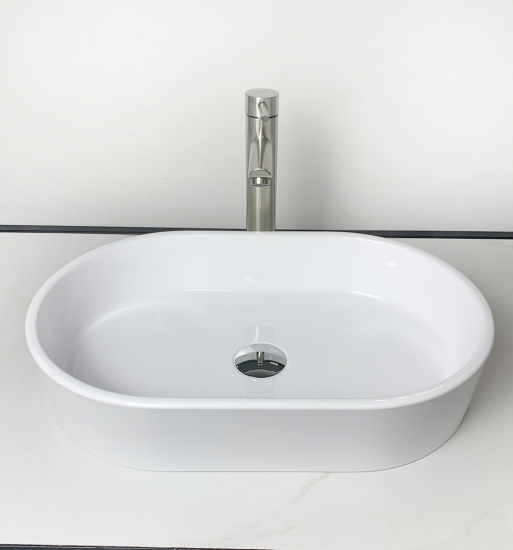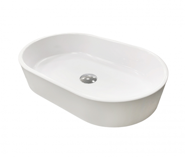 Головна - Побутова техніка, інструменти та товари для дому - Сантехніка - Раковини - Adamant - Раковина, умивальник BESTE NEW, штучний камінь, овальна, без отвору для змішувача та переливу, 540x350x11мм, накладний, білий