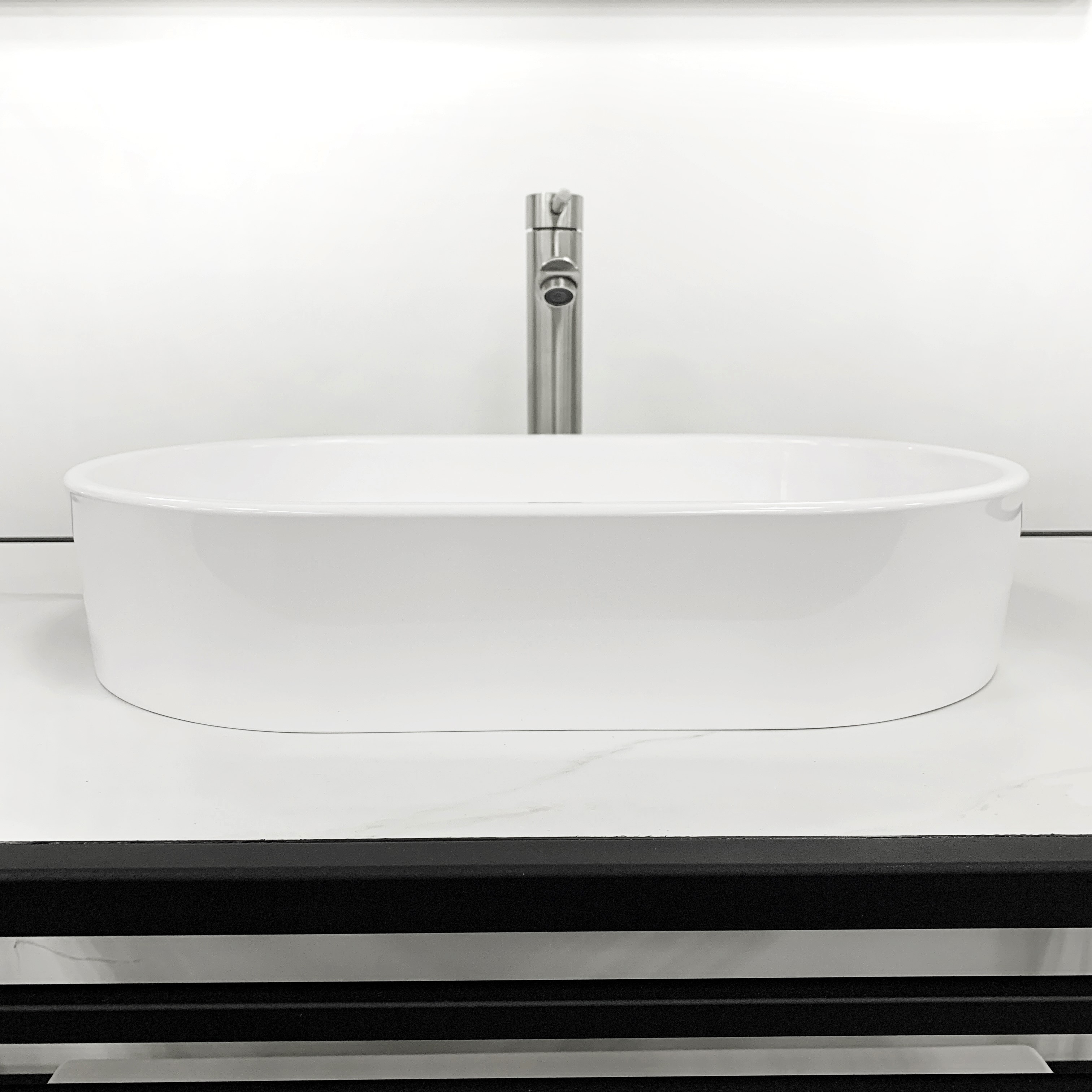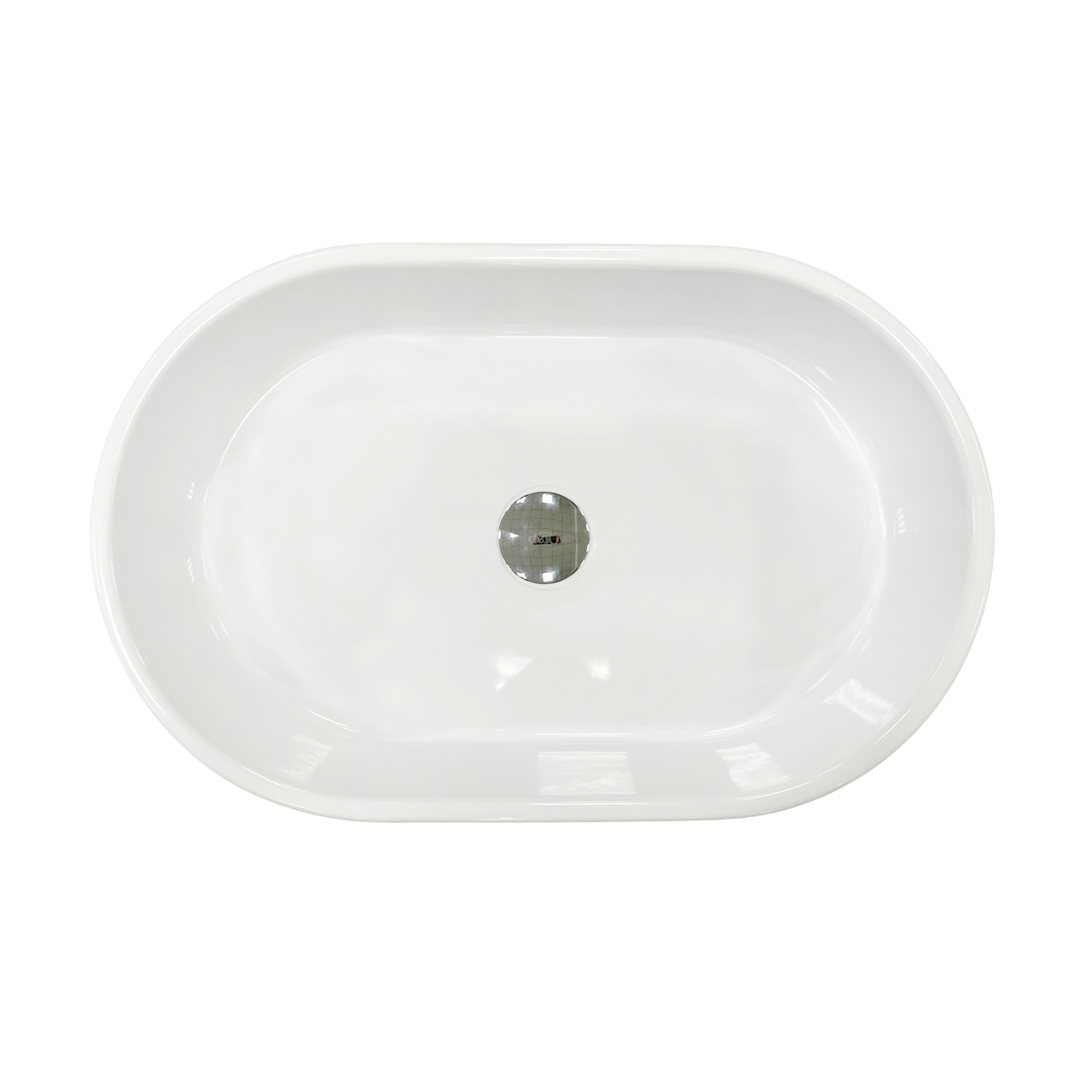 Раковина Adamant Lauf New має овальну форму, виготовлена зі штучного каменю з розмірами 540 x 445 x 130 мм та білим кольором. Накладний тип встановлення без отвору для змішувача та з отвором для переливу дозволяє монтаж зверху на стільницю. Матеріал створений за технологією Solid Surface, стійкий до впливу та довговічний.
