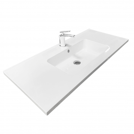 Опис Раковина, умивальник Adamant FLATE, штучний камінь, прямокут., з отвором для змішувача, з отвором для переливу, 1000х450х140мм, накладний, білий
