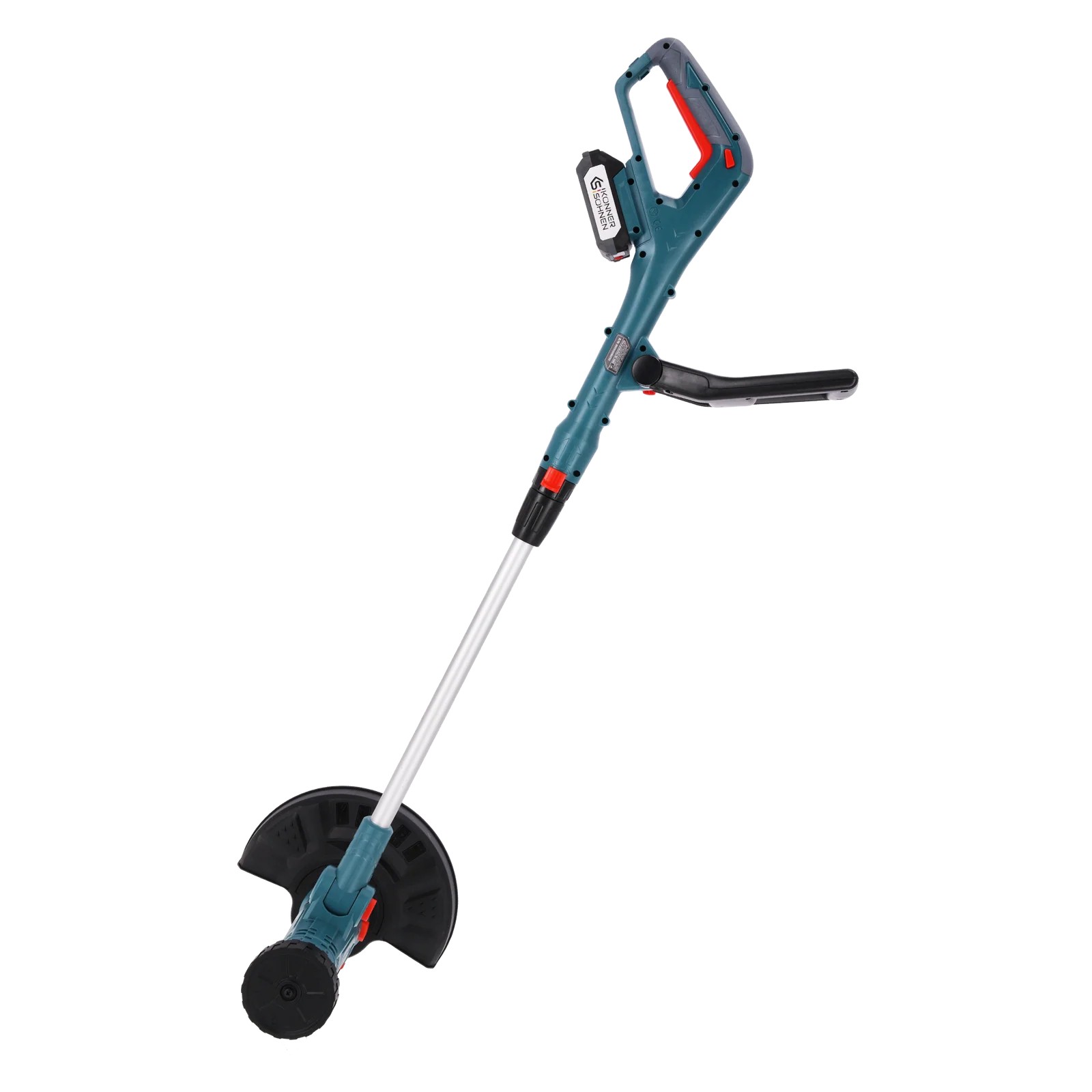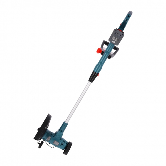 Акумуляторний багатофункційний тример Kоnner & Sоhnen® KSMFT-20V — універсальний інструмент для догляду за подвір’ям: косіння волосінню чи пластиковими ножами, підрізання кромок, підмітання доріжок і очищення швів між плитками. Змінні робочі блоки встановлюються швидко, опорне колесо допомагає вести рівну лінію, а поворотна рукоятка та регулювання моторного блоку підвищують контроль і зручність.