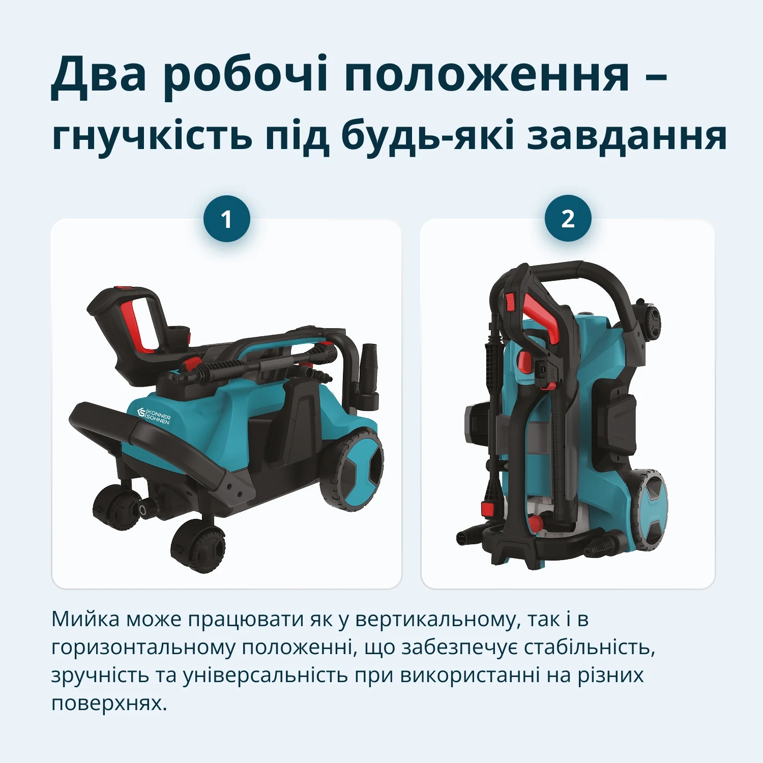 • Два положення роботи: вертикальне та горизонтальне — зручність і універсальність у різних сценаріях