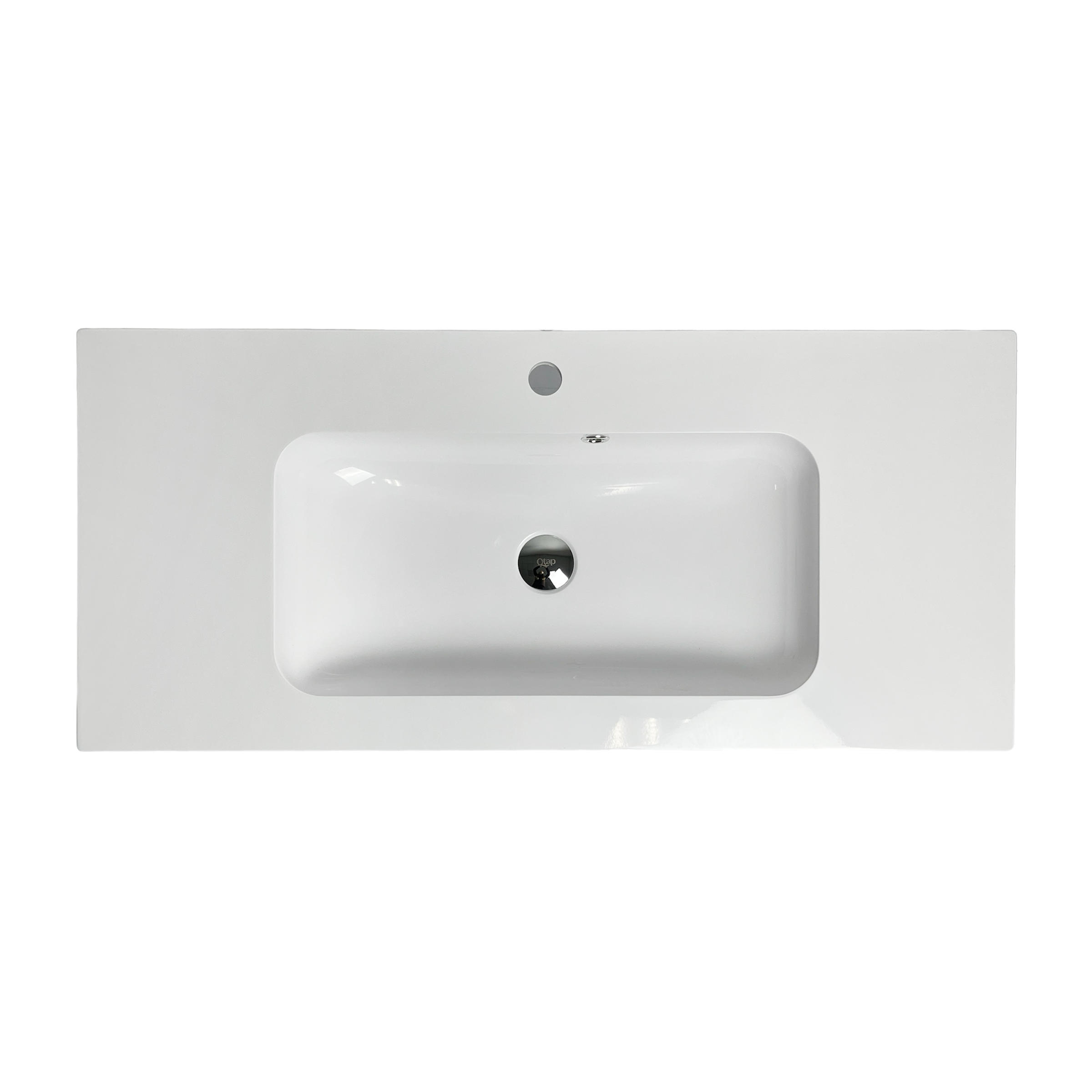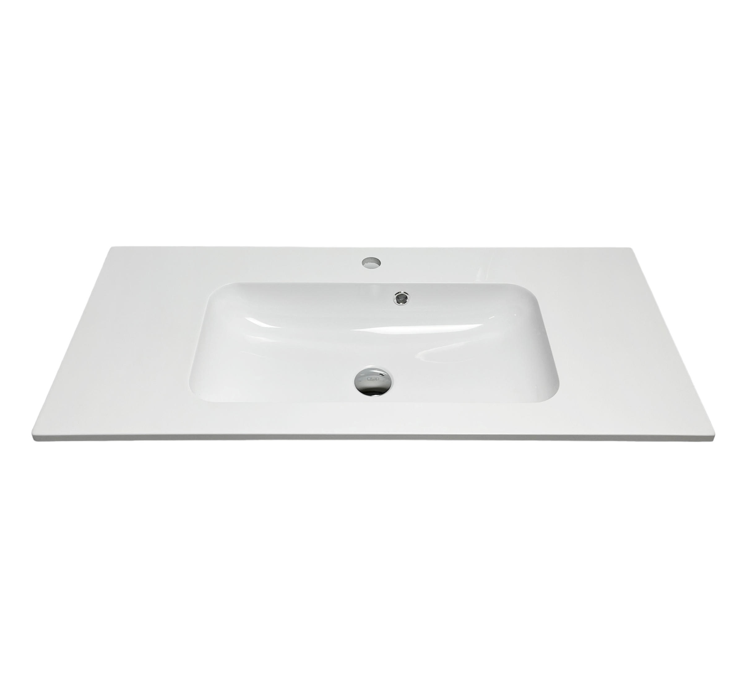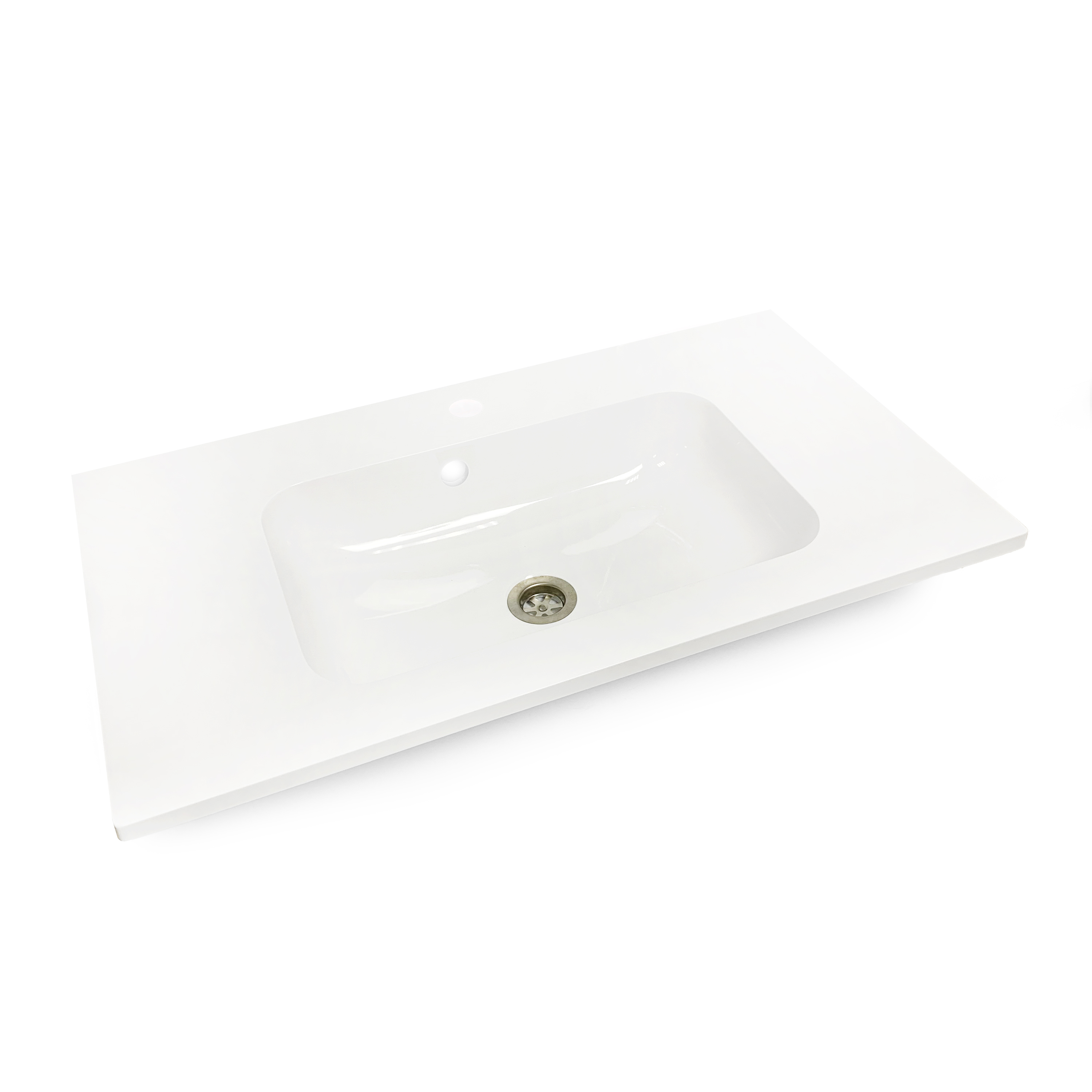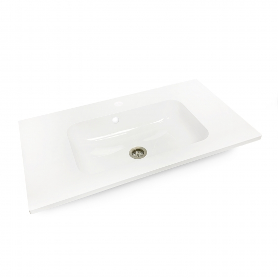 Опис Раковина, умивальник Adamant FRATE, штучний камінь, прямокут., з отвором для змішувача, з отвором для переливу, 995x450x1525мм, накладний, білий