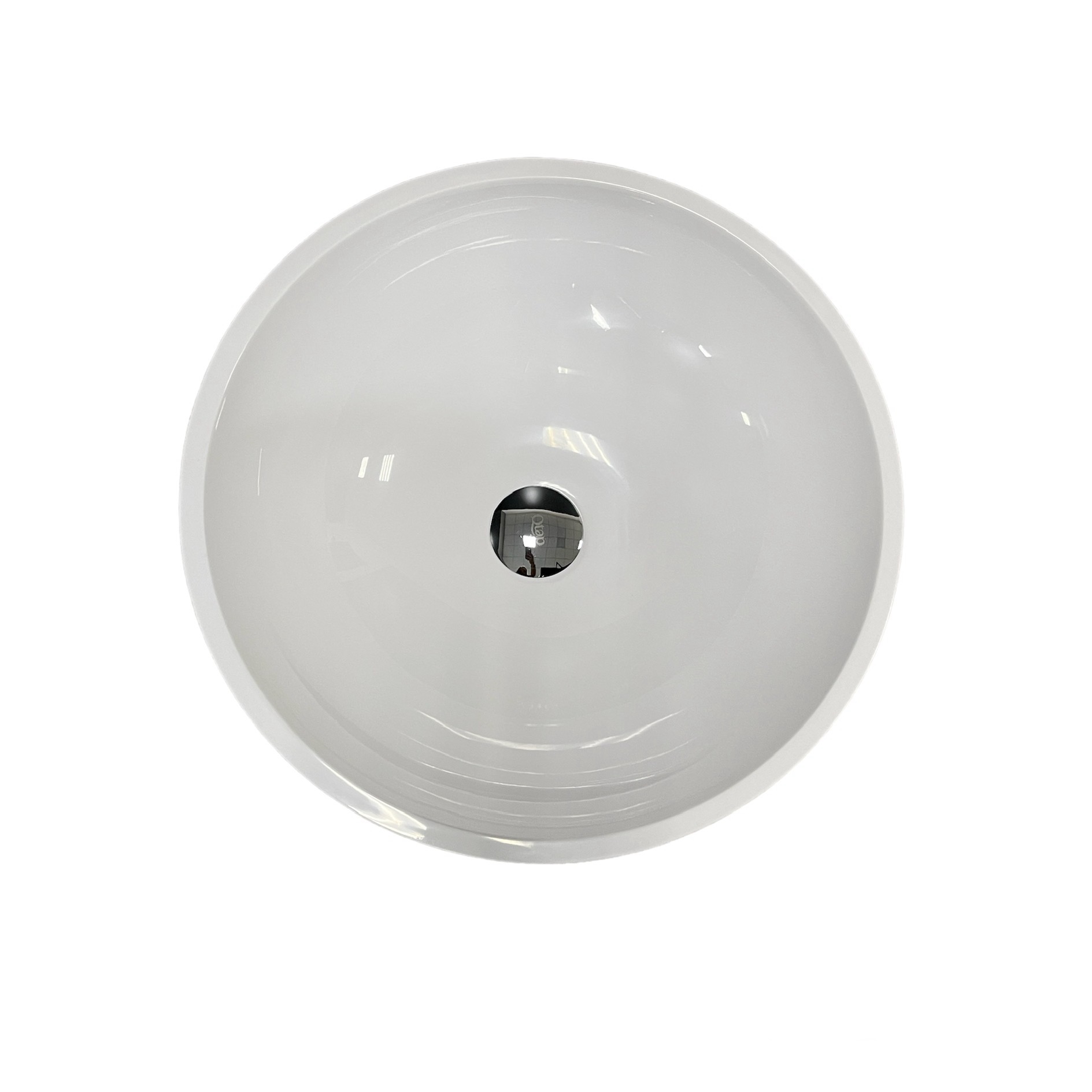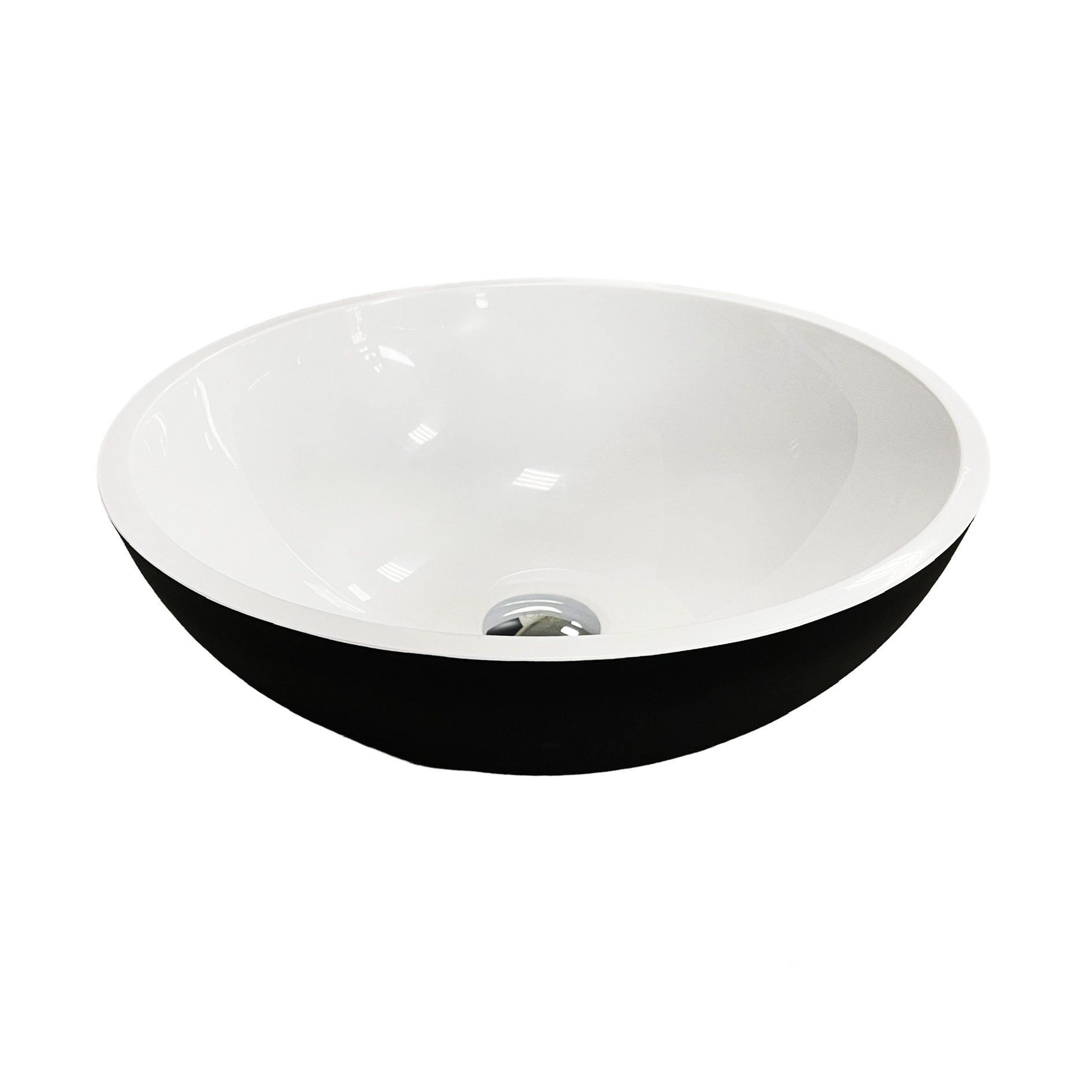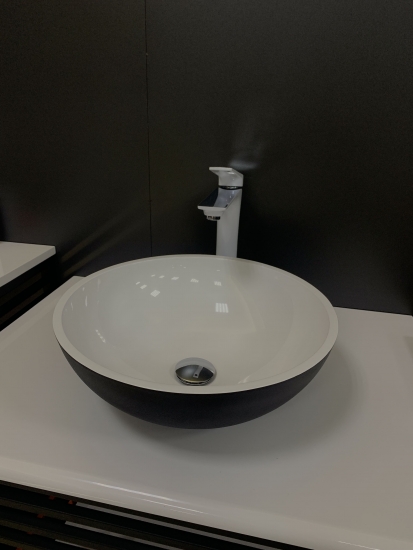 Опис Раковина, умивальник Adamant KREIS, штучний камінь, кругла, без отвору для змішувача та переливу, 420х150мм, накладний, чорно-білий