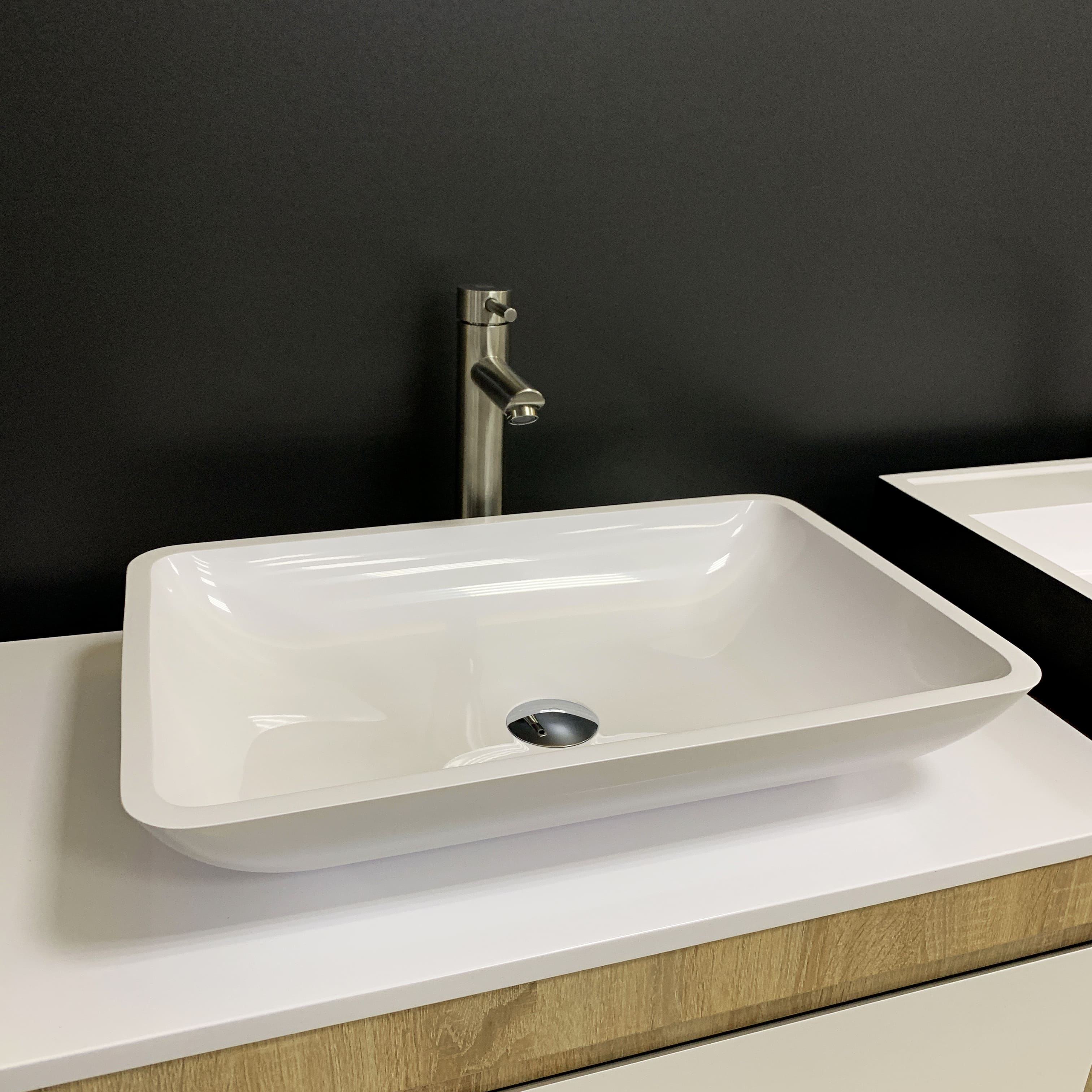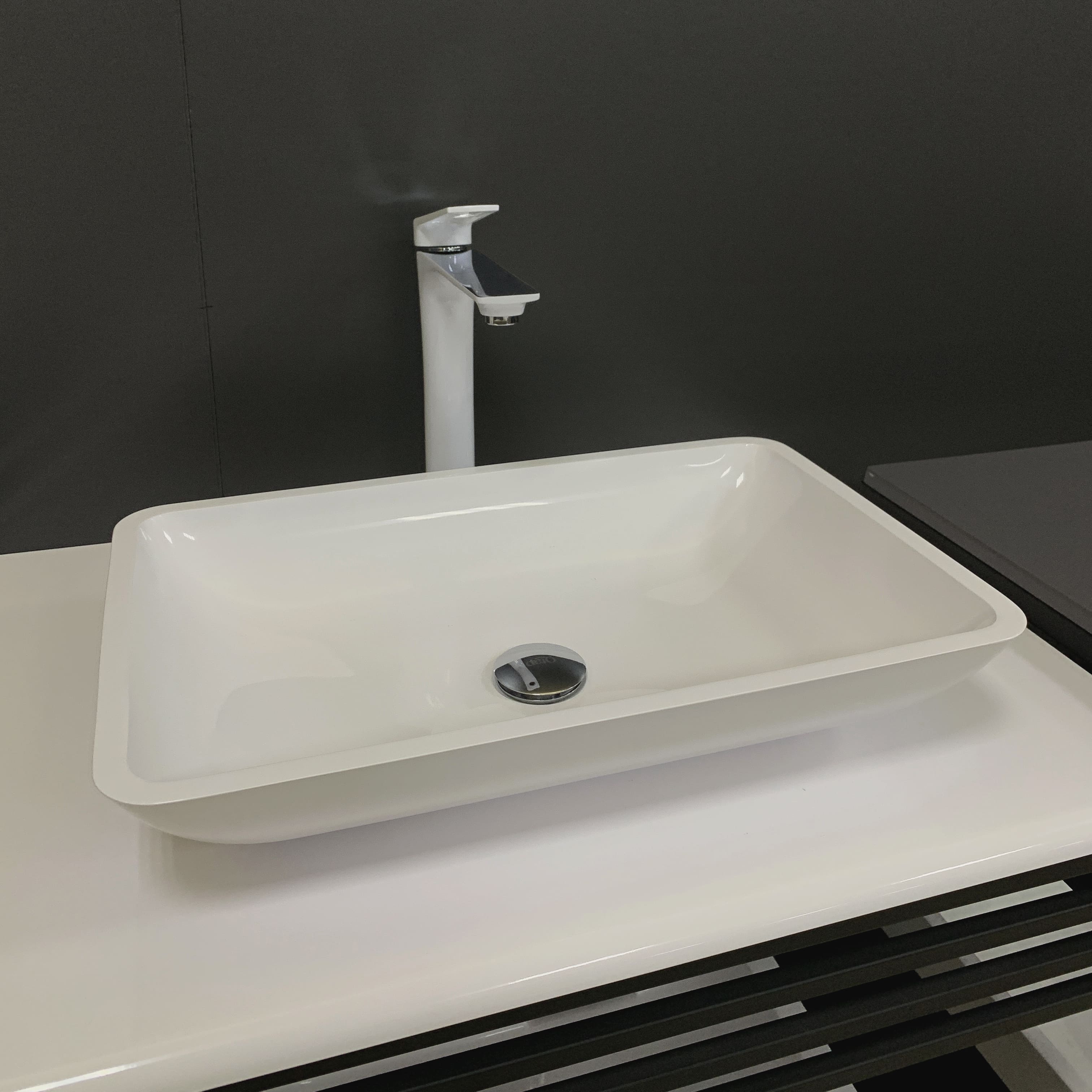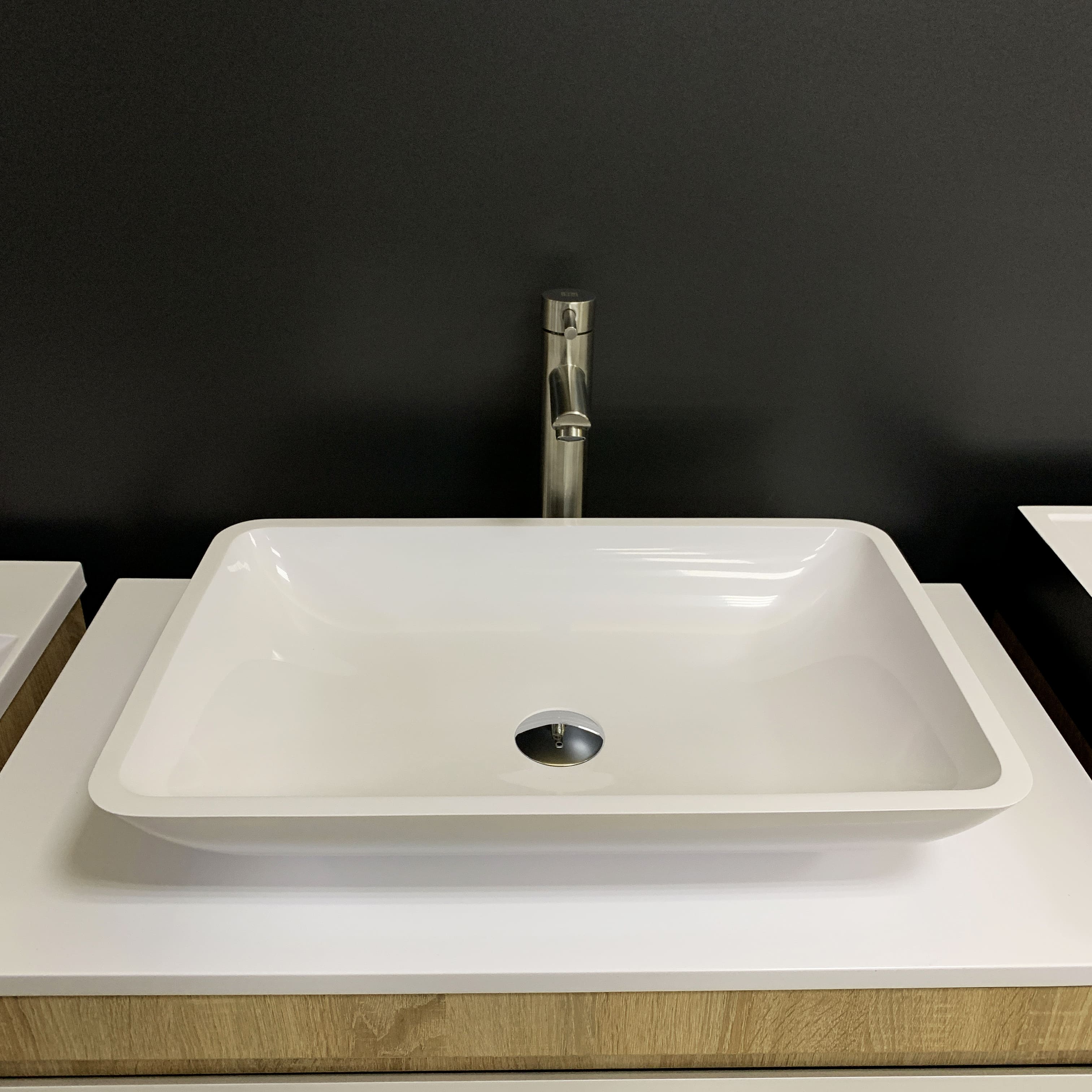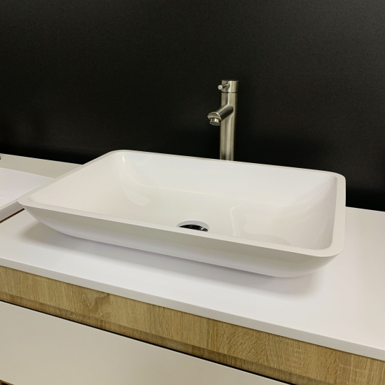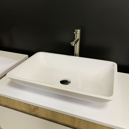 Опис Раковина, умивальник Adamant LOWER, штучний камінь, прямокут., без отвору для змішувача та переливу, 560x360x100мм, накладний, білий
