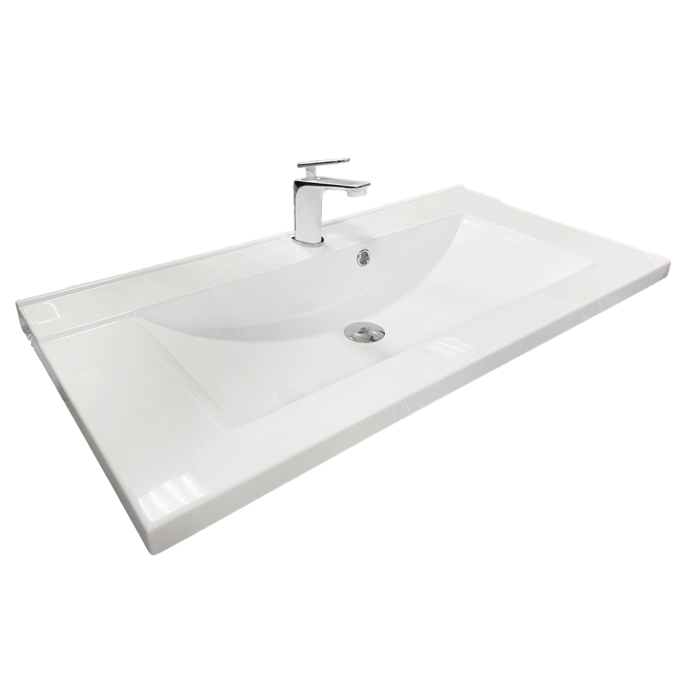 Опис Раковина, умивальник Adamant QUANTO, штучний камінь, прямокут., з отвором для змішувача, з отвором для переливу, 900х447х140мм, накладний, білий