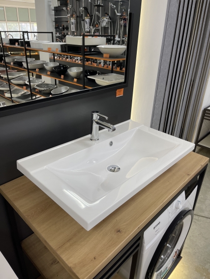 Опис Раковина, умивальник Adamant QUANTO, штучний камінь, прямокут., з отвором для змішувача, з отвором для переливу, 800х447х140мм, накладний, білий